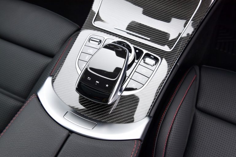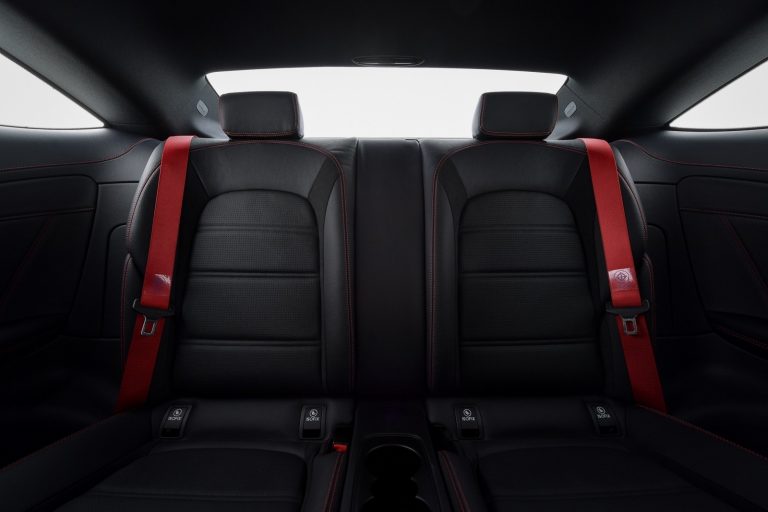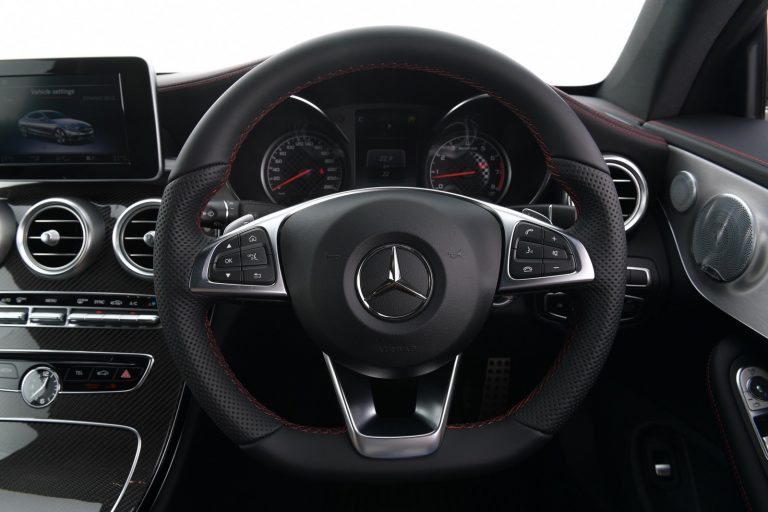 ภายในห้องโดยสารตอกย้ำความเป็นสายพันธ์สปอร์ตด้วยการตกแต่งโทนสีดำ เดินด้ายแดง ตลอดจนลาย AMG Carbon-Fibre และวัสดุอลูมิเนียม ตามด้วยติดตั้งพวงมาลัย AMG Performance หุ้มหนัง DINAMICA microfiber พร้อมเบาะนั่งที่โอบกระชับกับสรีระสามารถปรับเปลี่ยนได้ด้วยระบบไฟฟ้า, เข็มขัดนิรภัยสีแดงพร้อมระบบป้อนเข็มอัตโนมัติ ส่วนความบันเทิงนั้นจัดเต็มด้วยเครื่องเสียงวิทยุ-ซีดี MB Audio 20 พร้อม Touchpad และ Controller, ซึ่งควบคุมระบบเสียงรอบทิศทางด้วยแบรนด์ Burmester®