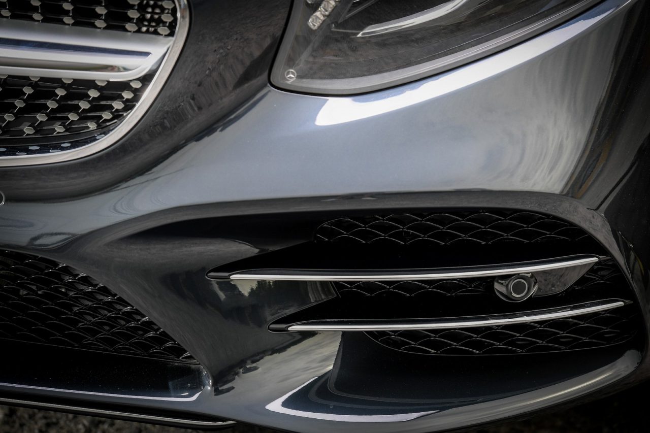 นอกจากนี้ยังมีความโดดเด่นเส้นสายลวดลายอันเป็นเอกลักษณ์ จากงานออกแบบชุดกระจังหน้าแบบ Diamond Grille สีเงิน พร้อมการตกแต่งด้วยวัสดุโครเมี่ยม และการประทับตราสัญลักษณ์ Mercedes-Benz รับกับมุมมองจากด้านข้างอันงามสง่าด้วยฝากระโปรงหน้าที่ทอดยาว