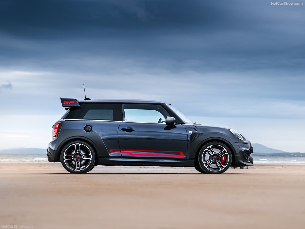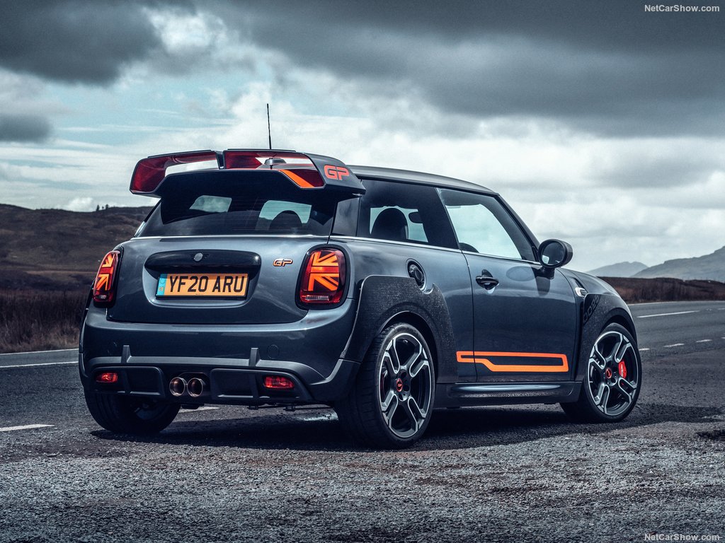 MINI John Cooper Works GP 2020 มาด้วยการตกแต่งของสีเทา Racing Grey ผสานชุดแต่ง GP Aerodynamic Kit ตัดด้วยสีแดง Chilli Red/Rosso Red โป่งซุ้มล้อใช้วัสดุคาร์บอนไฟเบอร์พร้อมหมายเลขประจำตัวรถ สปอยเลอร์หลังพร้อมสัญลักษณ์ GP
