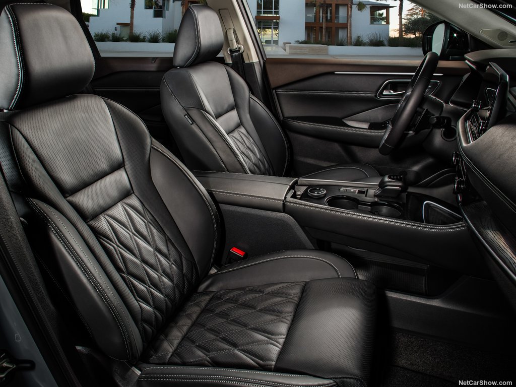 ส่วนภายในของ ROGUE 2021 มีความใหญ่ยิ่งขึ้น โดยมีพื้นที่วางขาด้านหลังเพิ่มขึ้น 15.24 มม. และเฮดรูมเพิ่มขึ้น 17.78 มม. อีกทั้งถูกตกแต่งใหม่ด้วยหน้าจอ Infotainment มาตรฐานขนาด 8 นิ้ว ที่รองรับ Apple CarPlay และ Android Auto