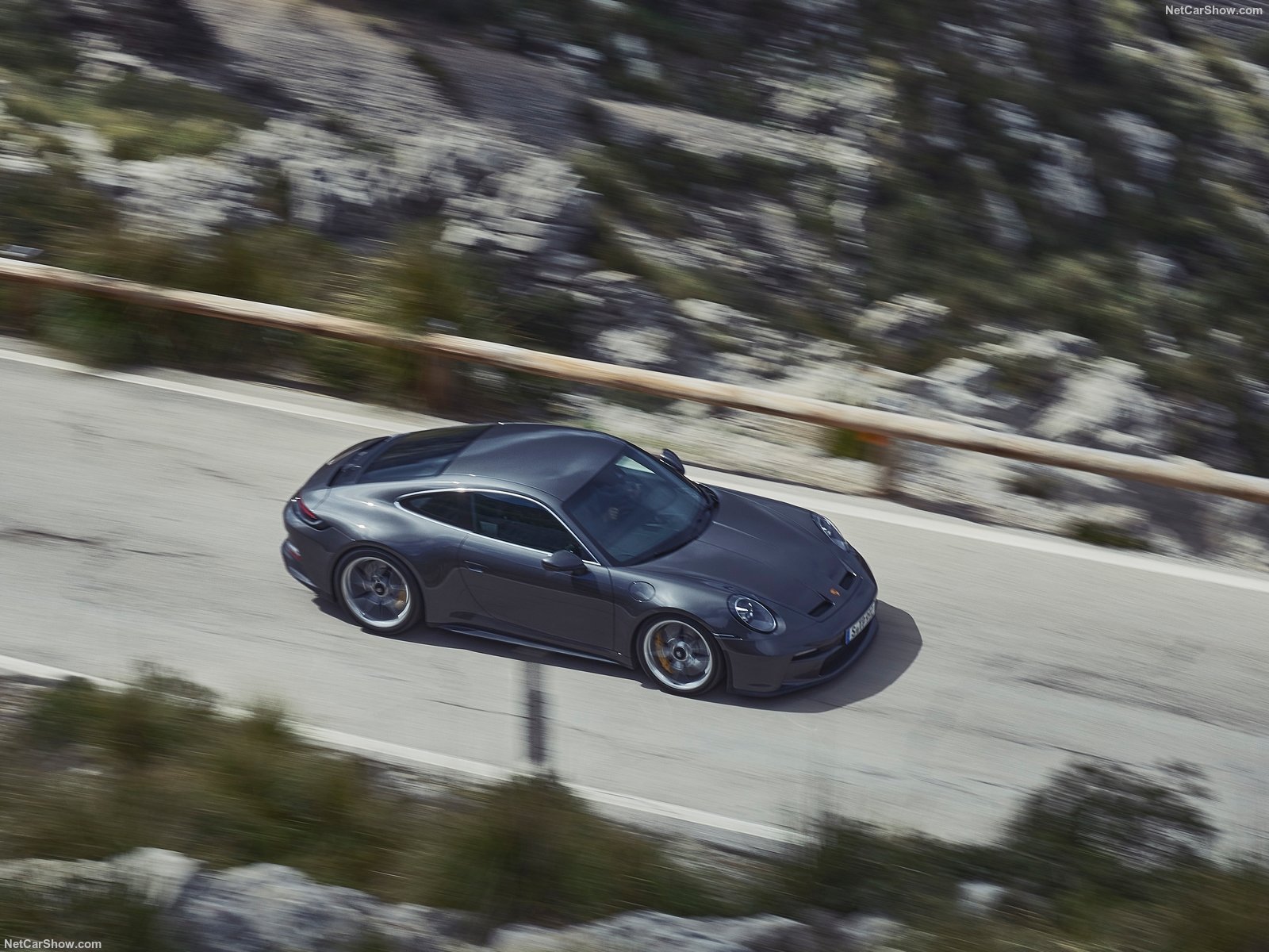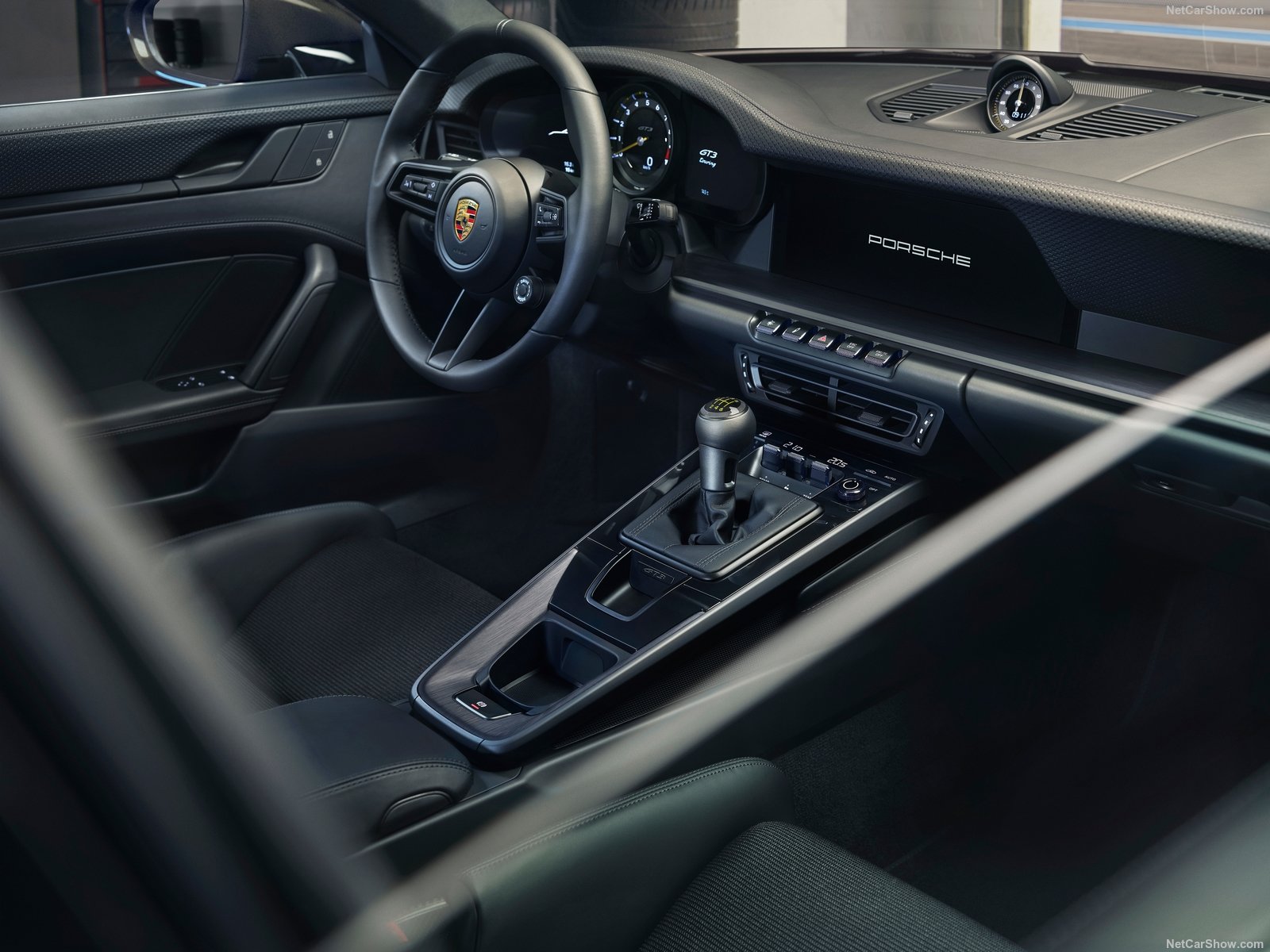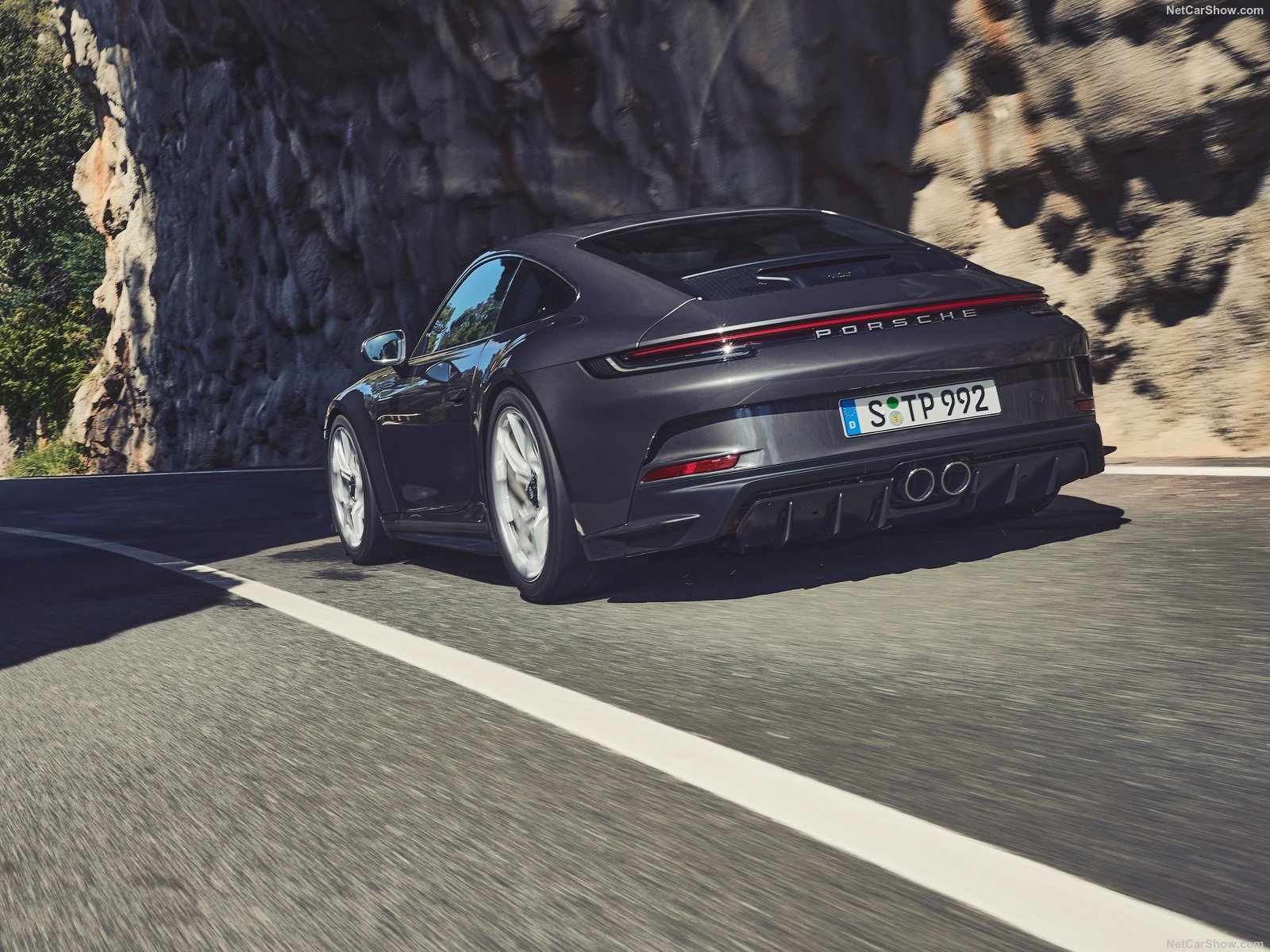 จุดเปลี่ยนหลักที่ชัดเจนจะอยู่ด้านหลัง ซึ่งมีการถอดเอกลักษณ์ที่สะดุดตาอย่างสปอยเลอร์ทรง Swan-Neck ออก และเปลี่ยนเป็นสปอยเลอร์ปรับระดับอัตโนมัติตามความเร็ว ตามด้วยการติดตั้งชุด Diffuser กันชนท้ายที่มีงานดีไซน์ในสไตล์เดียวกับ 911 RSR GT เพื่อคงไว้ซึ่งอารมณ์ความสปอร์ต แต่บ่งบอกเวอร์ชั่นด้วยตราสัญลักษณ์ “GT3 Touring” ด้านหลัง ขณะที่ภายในห้องโดยสารยังคงความ “คลาสสิค” ด้วยโทนสีดำทั้งหมด โดยจะมีงานดีไซน์ที่เฉพาะเจาะจงสำหรับรุ่น GT3 Touring ในส่วนของลวดลายบนแผงคอนโซลหน้า และแผงประตู เท่านั้น