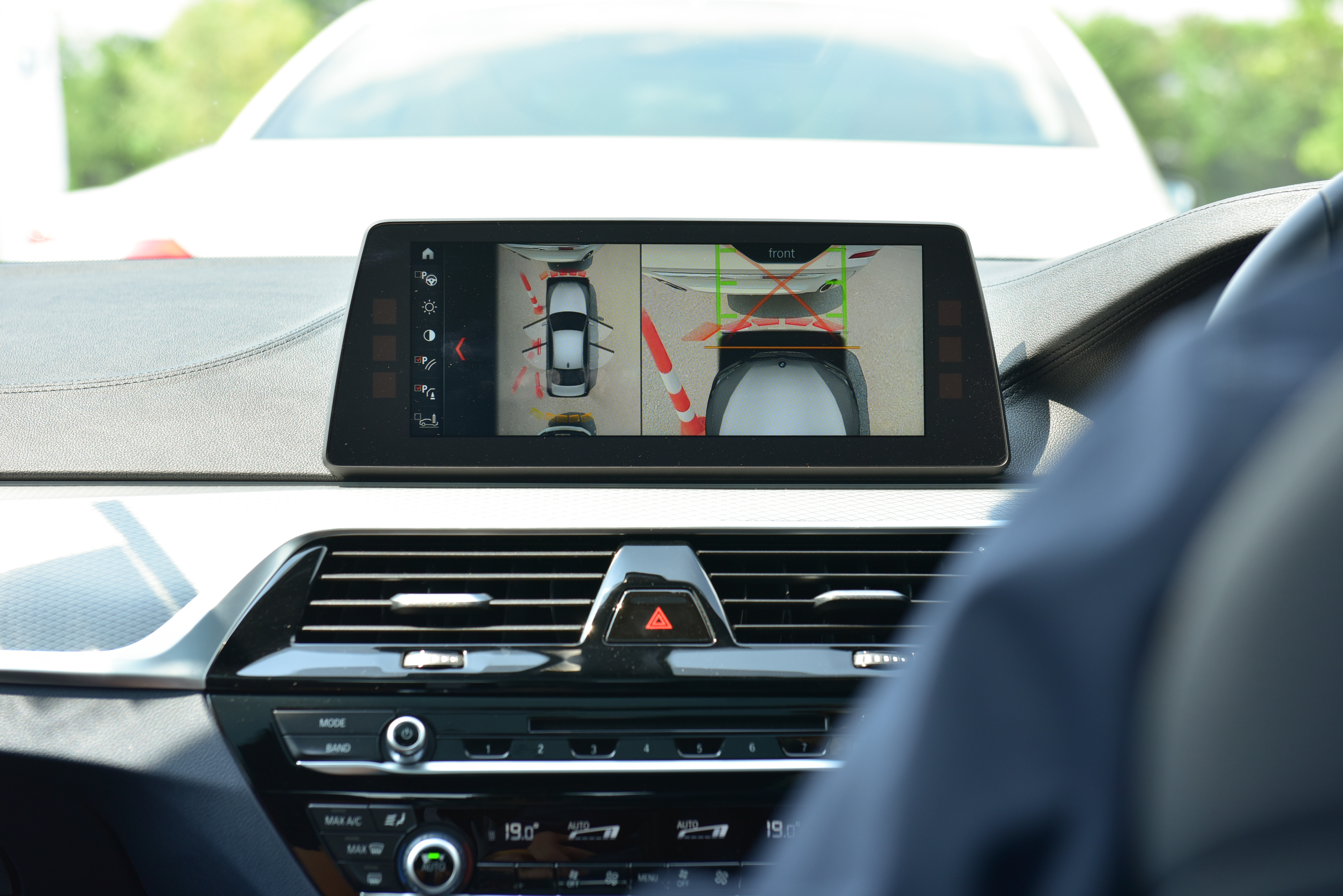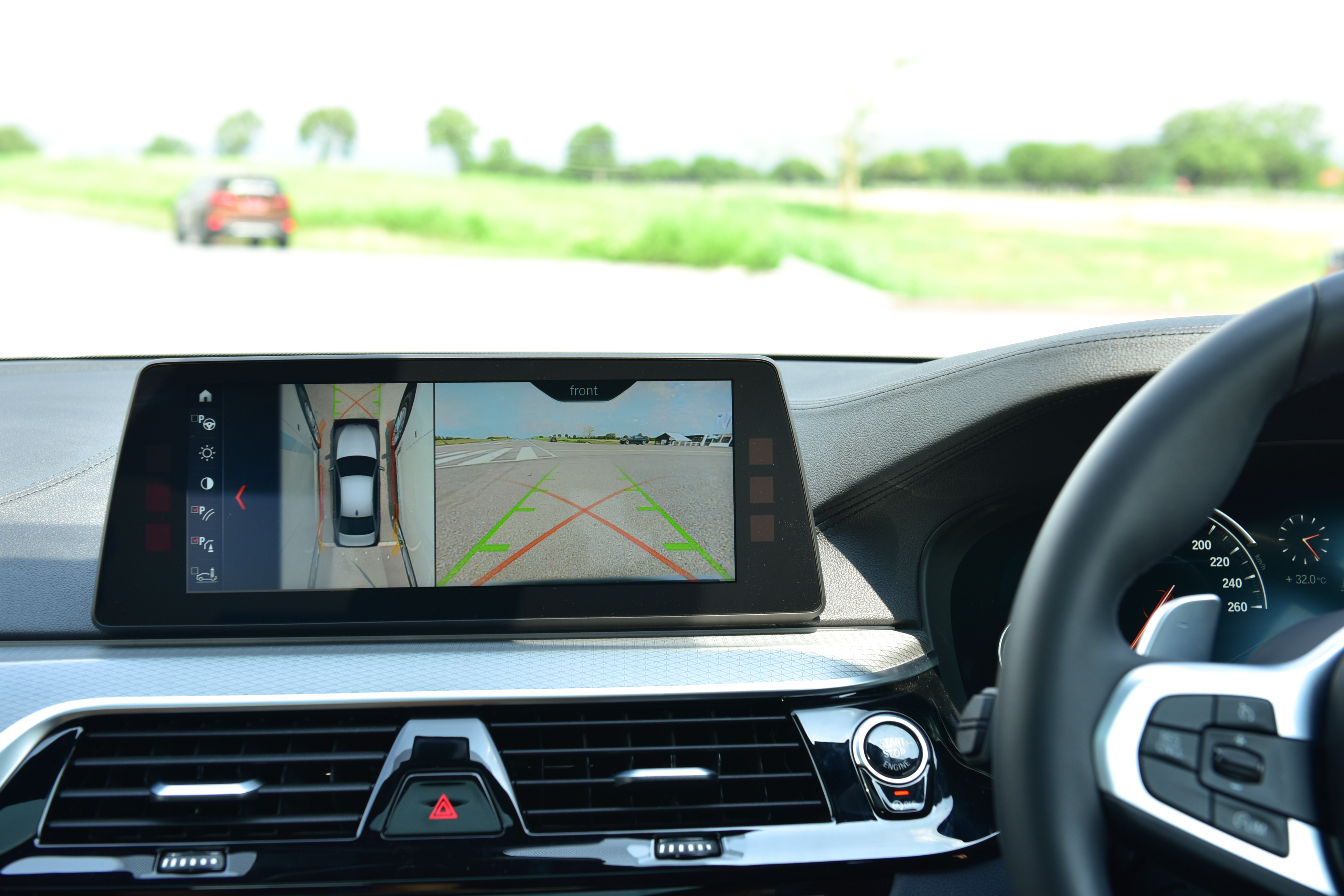 Parking Assistance : ระบบช่วยการถอยจอด ถูกพัฒนาให้ล้ำขึ้น จากเดิมที่เมื่อเรากดปุ่มให้สแกนช่องว่าง จากนั้นปล่อยพวงมาลัยให้รถทำงานหาเหลี่ยมเข้าช่องว่างของมันเองโดยเท้าเรายังต้องควบคุมเบรกอยู่ แต่ BMW530i M Sport (มีเฉพาะรุ่นนี้) ไฮเทคกว่านั้น สามารถปล่อยทั้งพวงมาลัย และเท้าออกจากแป้นเบรกได้เลย ระบบจะกะเหลี่ยมเข้าจอด (ทั้งขนาน และเข้าซอง) และเบรกรวมถึงใส่เกียร์ให้เอง เพียงแค่ว่าเมื่อสแกนพบช่องจอดแล้ว ต้องกดปุ่มระบบนี้แช่ไว้ จนกว่าการถอยจอดจะเสร็จสมบูรณ์