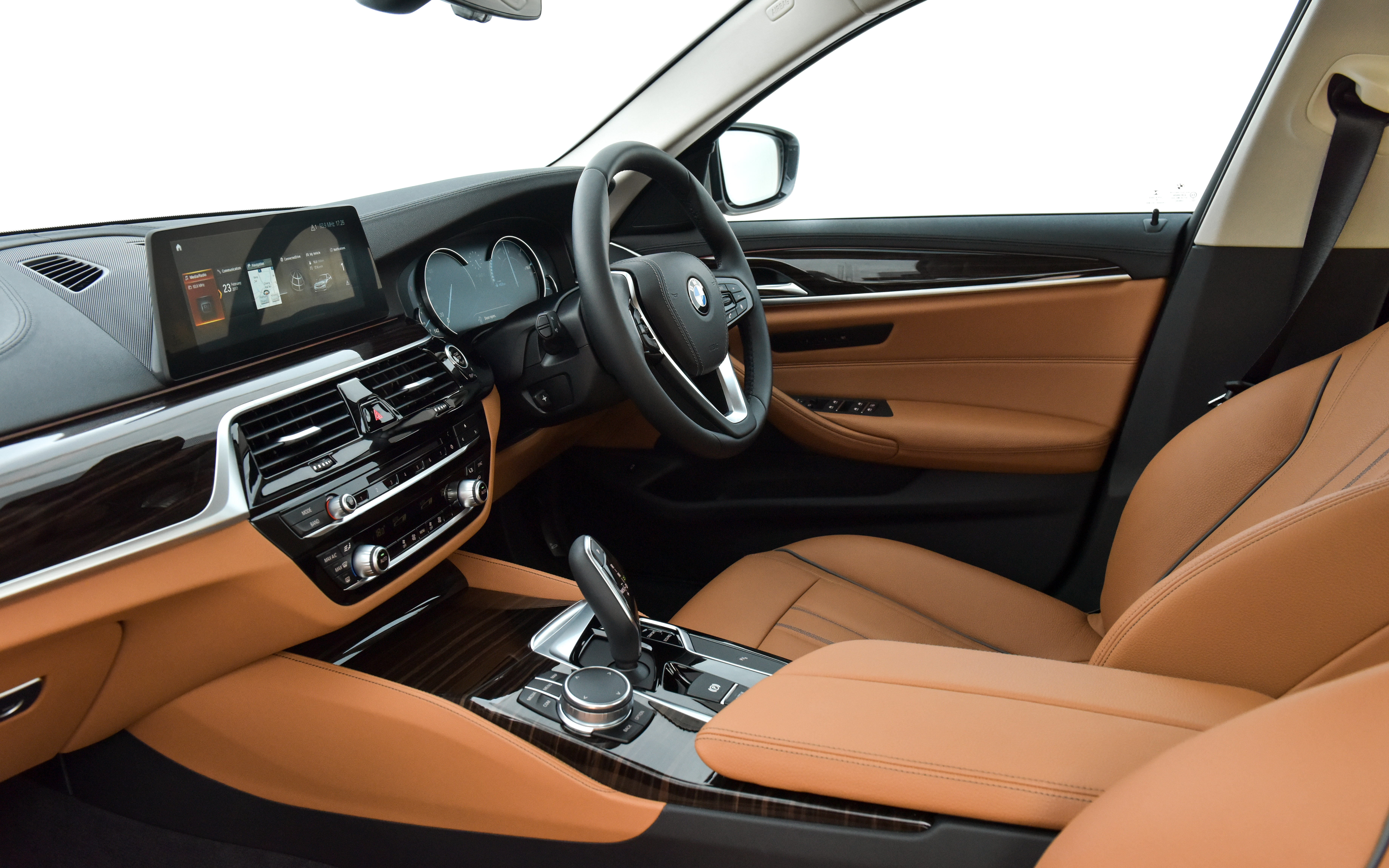 ห้องโดยสารออกแบบด้วยเทคโนโลยี SYNTAK (Special Synergy Thermoacoustic Capsule) เสริมการเก็บเสียงเพื่อความผ่อนคลายสูงสุดของผู้โดยสาร เบาะนั่งหนังแท้ Dakota มีให้ทั้งสองรุ่น ในรุ่นเบนซินจะตกแต่งด้วยอลูมิเนียม Rhombicle และแถบโครเมียม รุ่นดีเซลจะเป็นลายไม้ Fineline Ridge และแถบโครเมียม มาพร้อมหน้าจอดิสเพลย์ขนาด 10.25 นิ้ว ปุ่ม iDrive พร้อมระบบสัมผัส เหนือชั้นกับระบบสั่งการด้วยมือ Gesture Control (เทคโนโลยีจาก Series 7) และติดตั้งระบบ Navigation มาให้ด้วย พิเศษกว่าในรุ่น 530i M Sport จะให้ระบบเสียงชั้นนำรอบทิศทาง Harman Kardon รวมถึงระบบชาร์จโทรศัพท์แบบไร้สาย