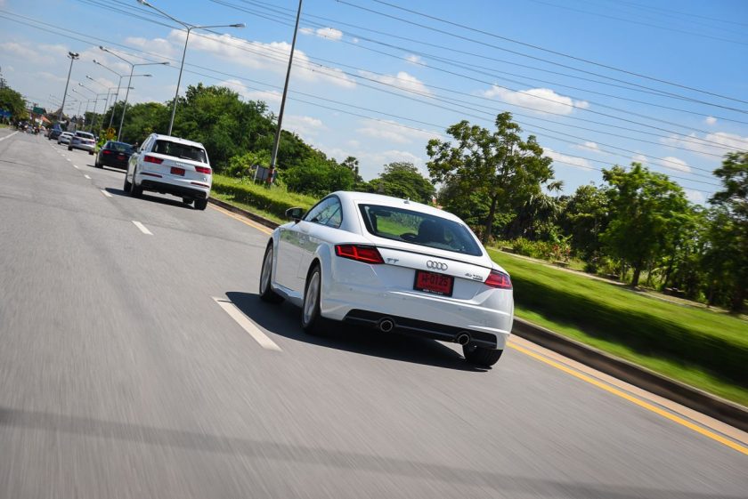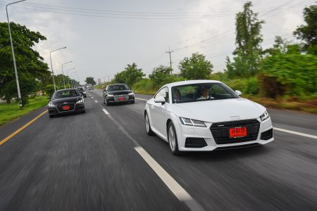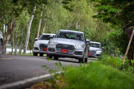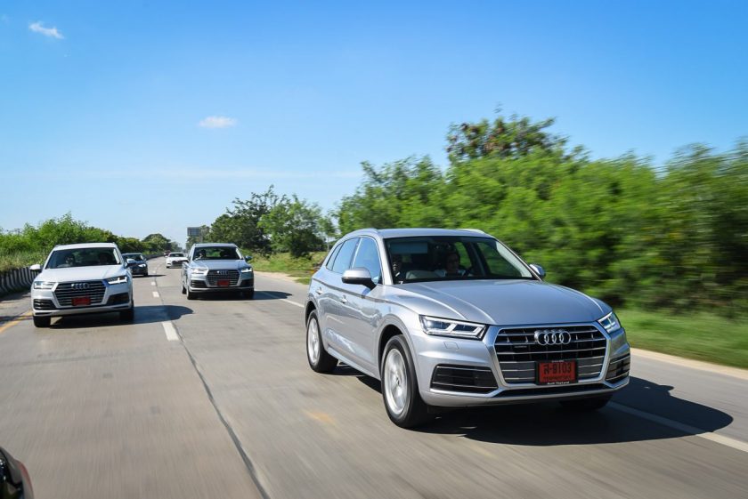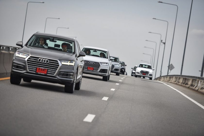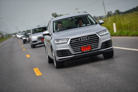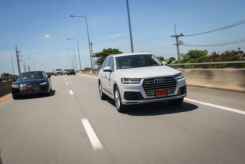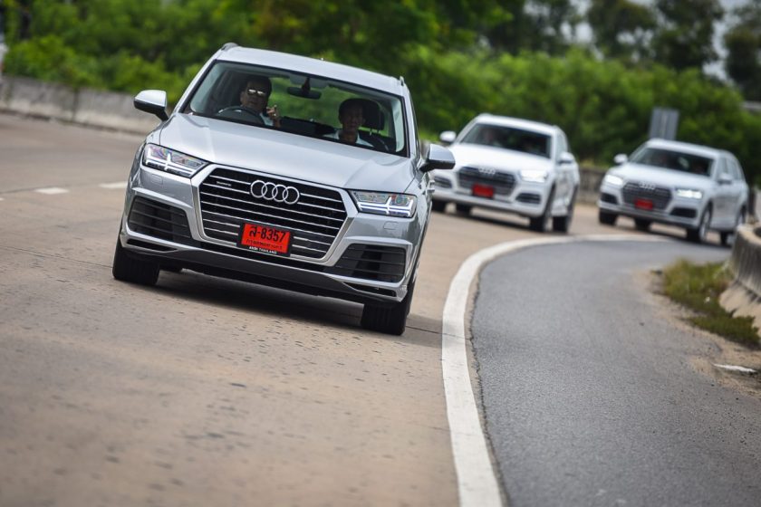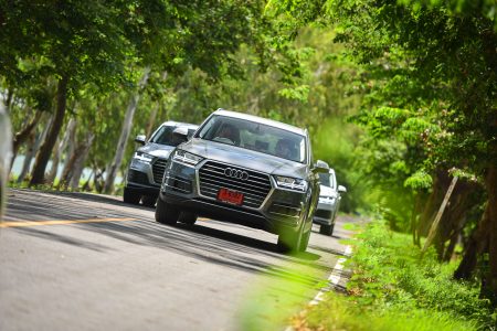 เส้นทางจากจุดสตาร์ทไปอยุธยานับว่าเลือกได้ดีทีเดียว เพราะมีทั้งการจราจรในเมือง และนอกเมืองให้วิ่ง และทำให้รู้ได้ว่าแม้ Q7 จะเป็น SUV ขนาดใหญ่สุดของค่าย แต่ก็ไม่ได้สร้างความ “ยาก” ในการขับขี่จนเกินไป แม้จะเป็นถนนในเมืองที่รถราหนาแน่น จนต้องใช้การเปลี่ยนเลนส์บ่อยๆ ครั้งก็ยังสามารถทำได้อย่างคล่องตัว และทุกรุ่นที่ขนมาให้มาลองขับกันก็บอกได้เลยไม่มี “ผิดหวัง”