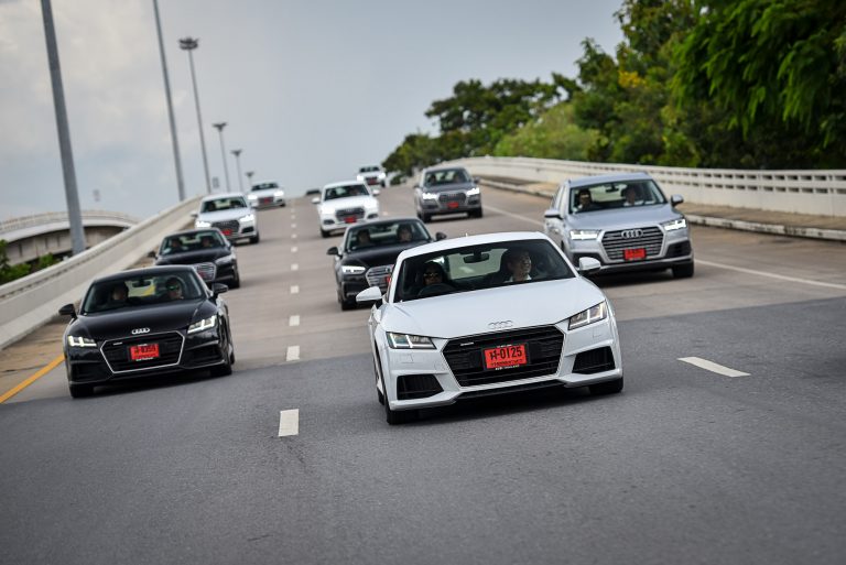 ในที่สุด Audi Thailand (ออดี้ ประเทศไทย) ก็ “ใจดี” ส่งเทียบเชิญสื่อมวลชนสายยานยนต์ไทย ได้ลองของเหล่าตัวแรงภายใต้แบรนด์ Audi ที่ ณ ปัจจุบันเปิดตลาดในไทยด้วยรถสปอร์ต Coupe และรถอเนกประสงค์ SUV เป็นหลัก และที่สำคัญผมเองก็จำไม่ได้หรอกว่า เค้านำเข้ามาทำตลาดในบ้านเรากี่รุ่น แต่ที่แน่ๆ ก็คือ ทุกรุ่นที่มีเค้าเอามาหมด เพื่อให้ลองขับกัน เพราะงั้นมีหรือที่จะพลาด … เนื่องจาก Audi Q7 คือ เป้าหมายของเรา