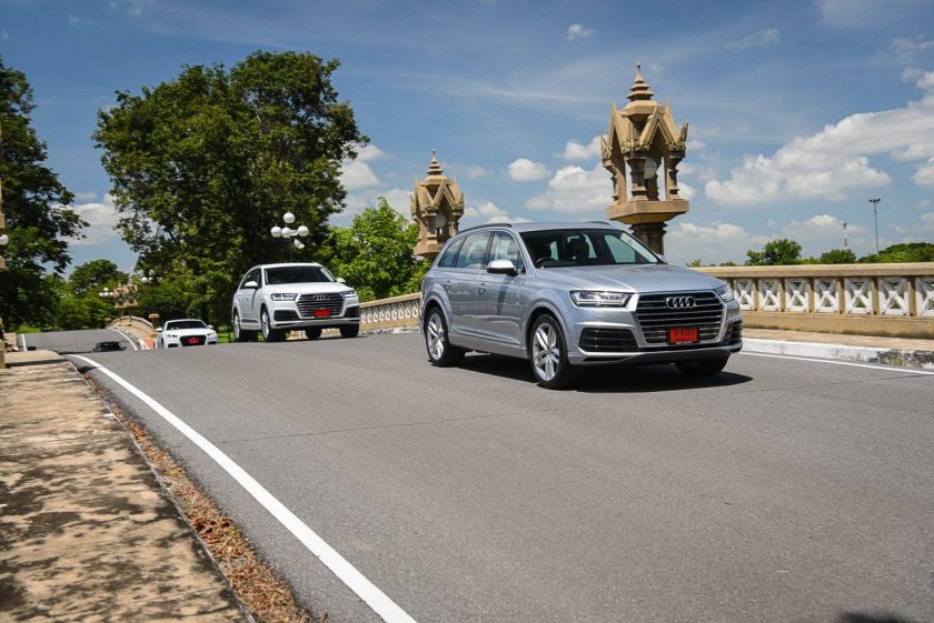 เส้นทางจากจุดสตาร์ทไปอยุธยานับว่าเลือกได้ดีทีเดียว เพราะมีทั้งการจราจรในเมือง และนอกเมืองให้วิ่ง และทำให้รู้ได้ว่าแม้ Q7 จะเป็น SUV ขนาดใหญ่สุดของค่าย แต่ก็ไม่ได้สร้างความ “ยาก” ในการขับขี่จนเกินไป แม้จะเป็นถนนในเมืองที่รถราหนาแน่น จนต้องใช้การเปลี่ยนเลนส์บ่อยๆ ครั้งก็ยังสามารถทำได้อย่างคล่องตัว และทุกรุ่นที่ขนมาให้มาลองขับกันก็บอกได้เลยไม่มี “ผิดหวัง”