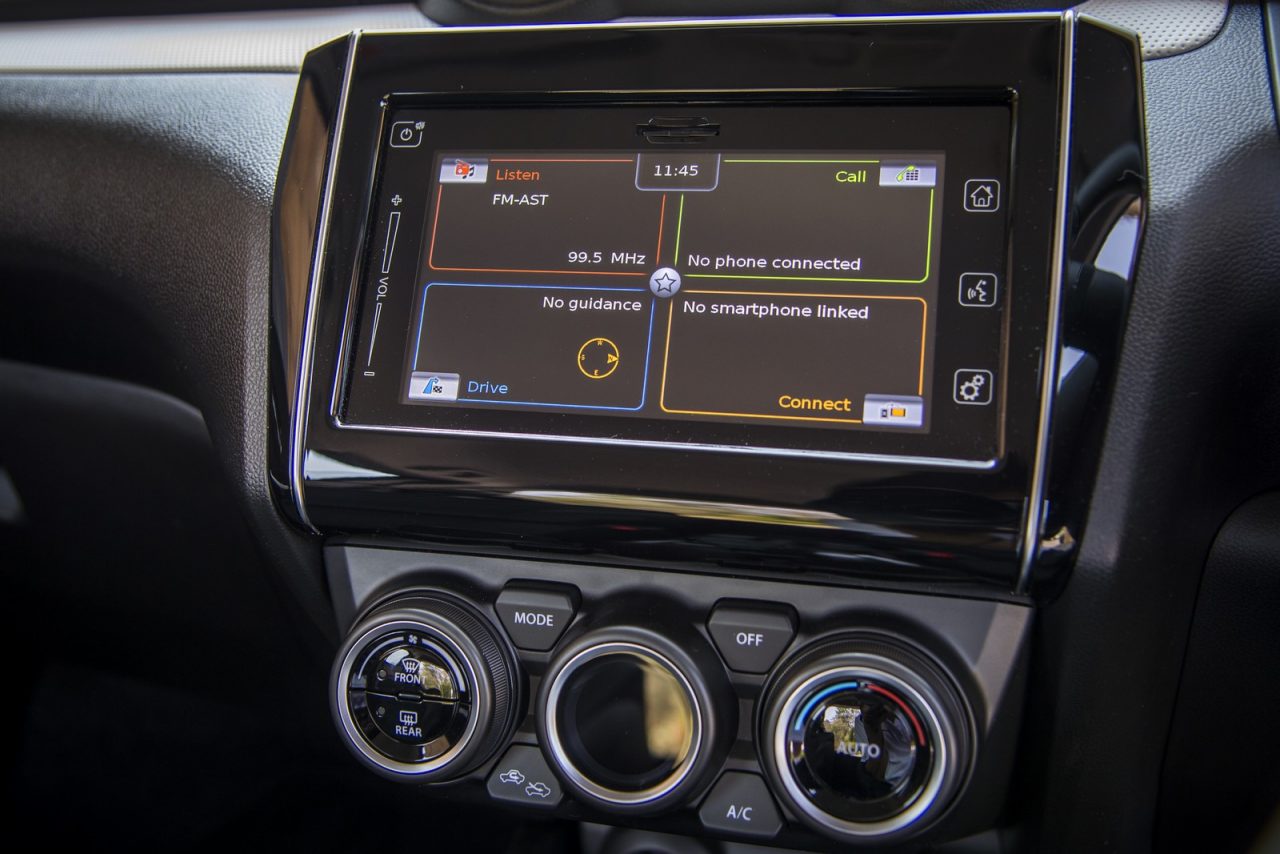 ส่วนเรื่องของระบบความบันเทิงนั้นไม่มีอะไรให้สะดุดใจ เพราะเค้าให้มาเต็ม โดยเฉพาะรุ่นท็อปที่ราวกับยกหน้าจอของซีดานรุ่นพี่ในค่ายมาใส่ เช่น ระบบ Suzuki Smart Connect ที่ควบคุมผ่านหน้าจอแสดงผลขนาด 7 นิ้ว รองรับระบบเครื่องเสียง MP3, WMA, SD Card, USB และ AUX และระบบนำทาง Navigator, ระบบเชื่อมต่อโทรศัพท์ Bluetooth พร้อม Apple CarPlay สำหรับ iOS