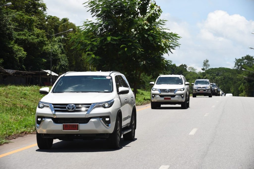 ทริปนี้เริ่มต้นที่จุดนัดพบ Toyota Driving Experience Park ย่านบางนาตราด ตามด้วยการรับฟังสรุปข้อมูลผลิตภัณฑ์ ซึ่งรายละเอียดทางกายภาพก็จะประมาณว่าเติมความสดใหม่ให้ภายนอก และภายในทั้ง 2 รุ่น ตามด้วยออพชั่นความสะดวกสบายเพิ่มขึ้น โดยมีไฮไลต์สำคัญ คือ “การเปลี่ยนระบบเบรกเป็นดิสก์ 4 ล้อมาให้ในทุกรุ่น” รวมถึงการใส่ “ระบบขับเคลื่อน 4 ล้อ ∑4 ในรุ่นที่เป็นเครื่องยนต์ดีเซล 2.4 ลิตร” และนั่นคือสิ่งที่ทำให้ “Toyota Fortuner ก้าวหน้าเหนือคู่แข่งอีกขั้น ด้วยการเป็นรถอเนกประสงค์เพียงแบรนด์เดียวที่มีรุ่นขับเคลื่อน 4 ให้เลือกอย่างครบครันถึง 2 รุ่นเครื่องยนต์”