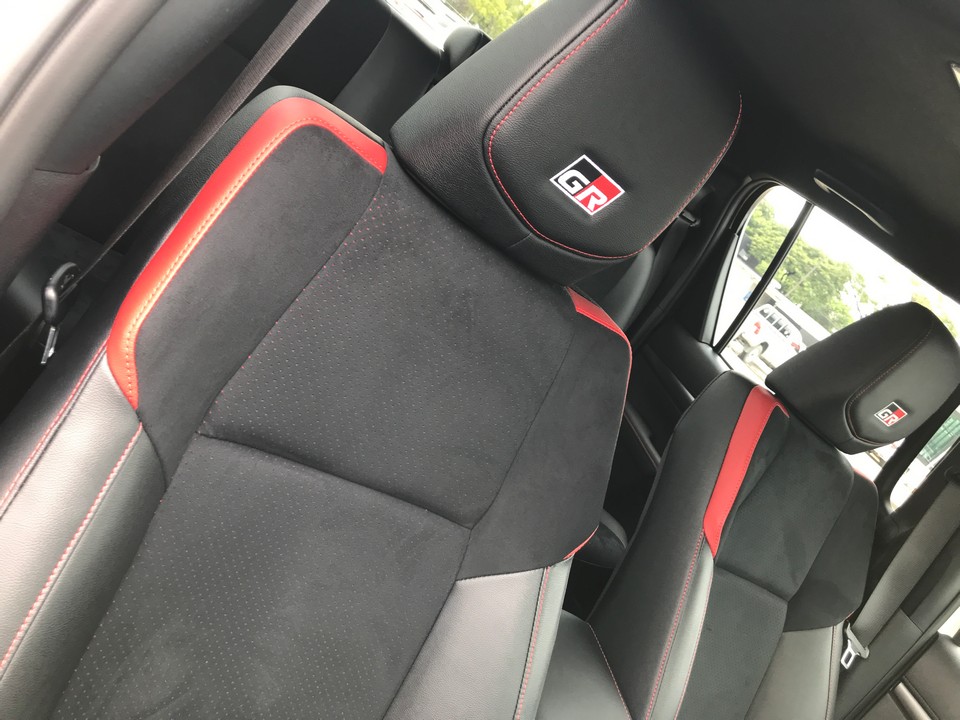 8. เบาะนั่งมีความสปอร์ตที่ชัดเจนมาก ด้วยรูปทรง ด้วยวัสดุ Suede แบบเจาะรูที่เป็นส่วนสัมผัส ผสมกับหนังสังเคราะห์ที่เป็นส่วนปีกซับพอร์ต ซึ่งผู้เขียนบอกเลยว่า นี่เป็นเบาะสปอร์ตที่ใช้ฟองน้ำ เนื้อค่อนไปทางแข็ง แต่เป็นแข็งแบบเฟิร์มแน่น เป็นอีกหนึ่งจุดที่ทำได้โดนใจมาก นั่งนานๆ แล้วไม่เมื่อยเลย ทั้งๆ ที่เคยคอมเม้นท์บ่อยเหมือนกันว่า หลังๆ มาหลายรุ่น โตโยต้าทำเบาะนั่งได้ดี แต่ตัว GR Sport นี้ ดีถูกใจขึ้นไปอีก