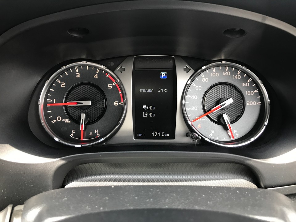 14. จากเดิมที่คิดว่า ช่วงล่าง GR Sport จะเน้นซิ่งบนถนนปกติ และไม่น่าแสดงประสิทธิผลได้ดีนักบนทาง ลูกรัง เป็นหลุมบ่อ นั่นเป็นความคิดที่ผิดถนัด เพราะเมื่อขับเข้าทางลูกรัง หรือดินแดงๆ เป็นหลุมบ่อ ช่วงล่างชุดนี้กลับทำได้ดีเอามากๆ ดีกว่าบนถนนปกติเสียอีก สามารถใช้ความเร็ว รูด ผ่านหลุม ผ่านแอ่งน้ำ ผ่านหินดินลูกรังไปได้สบายๆ รถมีอาการนิ่งทีเดียว เหมาะแก่การขับเข้าสวนเข้าไร่ ที่ให้อารมณ์เหมือนขับบนทางด่วนเลยทีเดียว และนี่เองน่าจะส่งผลถึง แฮนด์ลิ่งพวงมาลัยที่ คมจัด ที่ไม่เคยเจอมาก่อนในรถกระบะแบบถอยออกจากโชว์รูม
