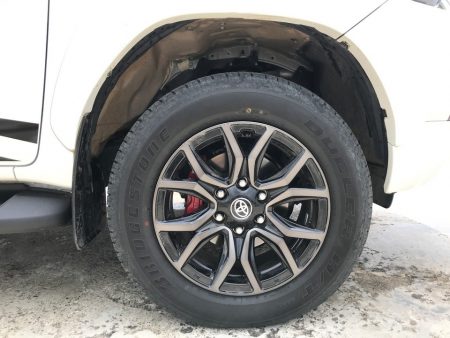 3. ล้อแม็กลายใหม่ขนาด 18 นิ้ว ถ้าให้เทียบก็ต้องอ้างไปถึงตัว Rocco ที่เป็นขอบ 18 นิ้วเหมือนกัน แต่คนละดีไซน์ ใช้ยางขนาดเดียวกัน 265 / 60 R 18 แต่ใน GR Sport ใช้ยางคนละยี่ห้อกับ Rocco และเป็นยาง HT ซึ่งต่างกับ Rocco ที่เป็นยาง AT