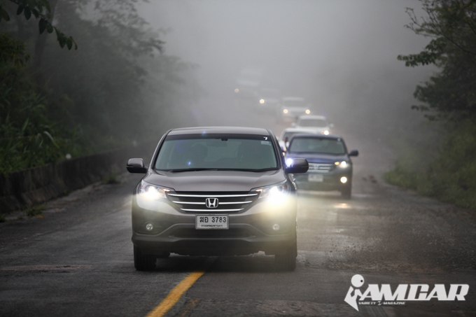 วันสุดท้ายของการเดินทางได้ลองใช้ระบบช่วงล่างแบบจัดเต็ม เพราะเส้นทางเป็นโค้งขึ้น-ลงเขาตลอดเส้นทาง ในส่วนช่วงล่างของ All-New HONDA CR-V มีการปรับเพิ่มขนาด Damper อีก 10 % จากของเดิม พวงมาลัยเปลี่ยนมาเป็น แร็ค แอนด์ ฟิเนียน พร้อมเพาเวอร์ผ่อนแรงแบบไฟฟ้า EPS ส่วนที่เพิ่มเติมความปลอดภัย คือ ระบบควบคุมการทรงตัว VSA พร้อมระบบช่วยควบคุมการบังคับพวงมาลัย MA-EPS ระบบป้องกันล้อล็อค ABS พร้อมระบบกระจายแรงเบรก EBD ระบบช่วยออกตัวบนทางลาดชัน Hill Start Assist แต่อีกหนึ่งตัวช่วยในการลงเขาแบบนี้คือ “Paddle Shift” ที่หลังพวงมาลัย เนื่องจากผมสามารถที่จะลดเกียร์ลงมาเรื่อยๆ เพื่อให้ Engine Brake ทำงานช่วยลดความเร็วรถเวลาลงเขา ช่วยลดภาระของเบรกไม่ให้ทำงานมากเกินไปจนไหม้ บางคันไม่ใช้ Engine Brake เขามาช่วย เหยียบเบรกค้างเอาไว้ตลอดเวลา กลิ่นไหม้ของเบรกเริ่มแสดงอาการส่งกลิ่นมากขึ้นเรื่อยๆ อันนี้ถือว่าเป็นการขับขี่ที่อันตรายมากๆ เพราะทำให้เบรกแตกได้ง่ายๆ