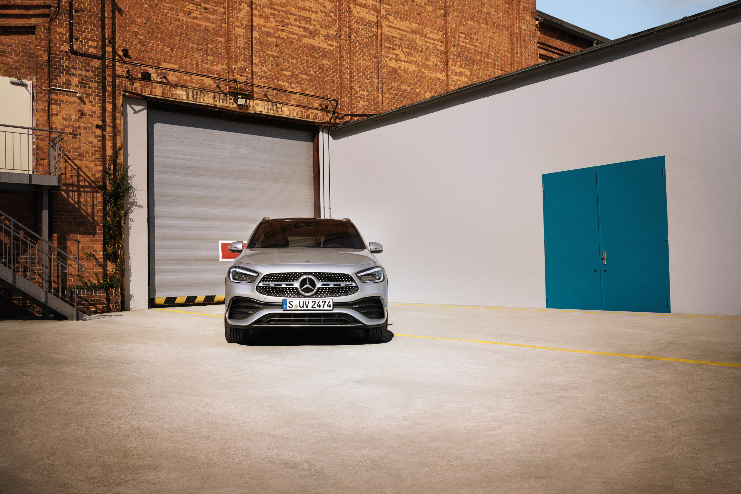 เริ่มจากด้านหน้าของตัวรถ ที่ประกอบด้วยชุดกระจังหน้า และชุดไฟหน้าที่ยังคงให้รายละเอียดเพื่อสะท้อนเอกลักษณ์ของความเป็นรถยนต์ SUV จาก Mercedes-Benz พร้อมด้วยเส้นสายด้านข้างอันทรงพลัง รับกับเส้นกระจกข้างที่ดูปราดเปรียวในสไตล์รถยนต์ Coupe อันเป็นเอกลักษณ์ที่โดดเด่นของรถยนต์รุ่น GLA ที่ช่วยเติมเต็มความสปอร์ตเร้าใจในทุกมุมมอง