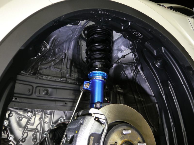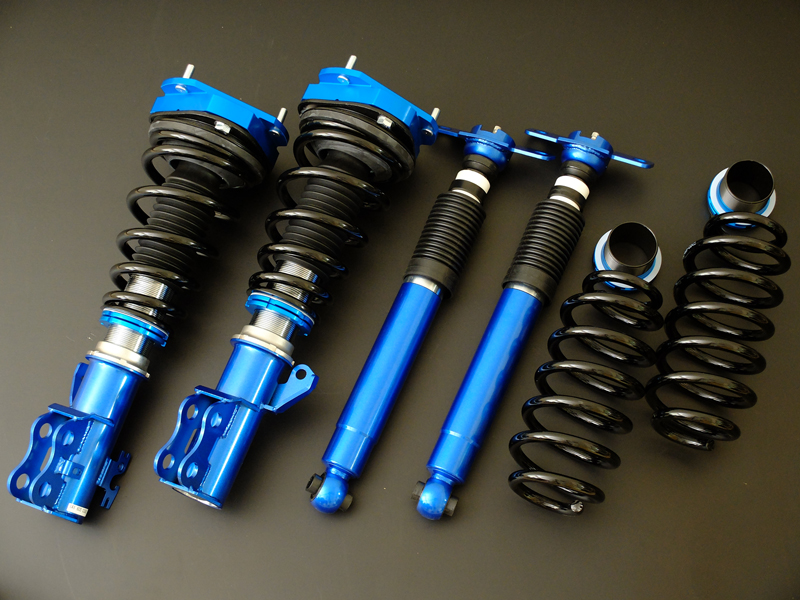 ชุดช๊อคอัพแบบสตรัทปรับเกลียว ที่สามารถปรับความแข็ง-อ่อน ได้ 40 ระดับ กับความแข็งของสปริงหน้า 6 kg และ หลัง 4kg มาพร้อมชุดปรับเซ็ตอัพความแข็ง-อ่อนแบบไฟฟ้าจากภายในรถ e-con2 ที่เป็นอุปกรณ์เสริม