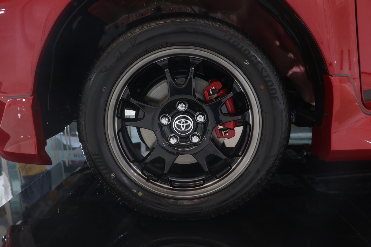 - ระบบเบรกหน้า แบบดิสก์เบรกมีครีบระบายความร้อน พร้อมคาลิปเปอร์สีแดง และสัญลักษณ์ GR