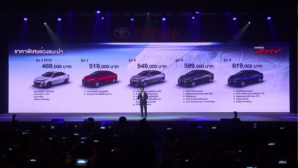 ราคา Yaris ATIV รุ่น J เกียร์อัตโนมัติ ราคา 519,000 บาท