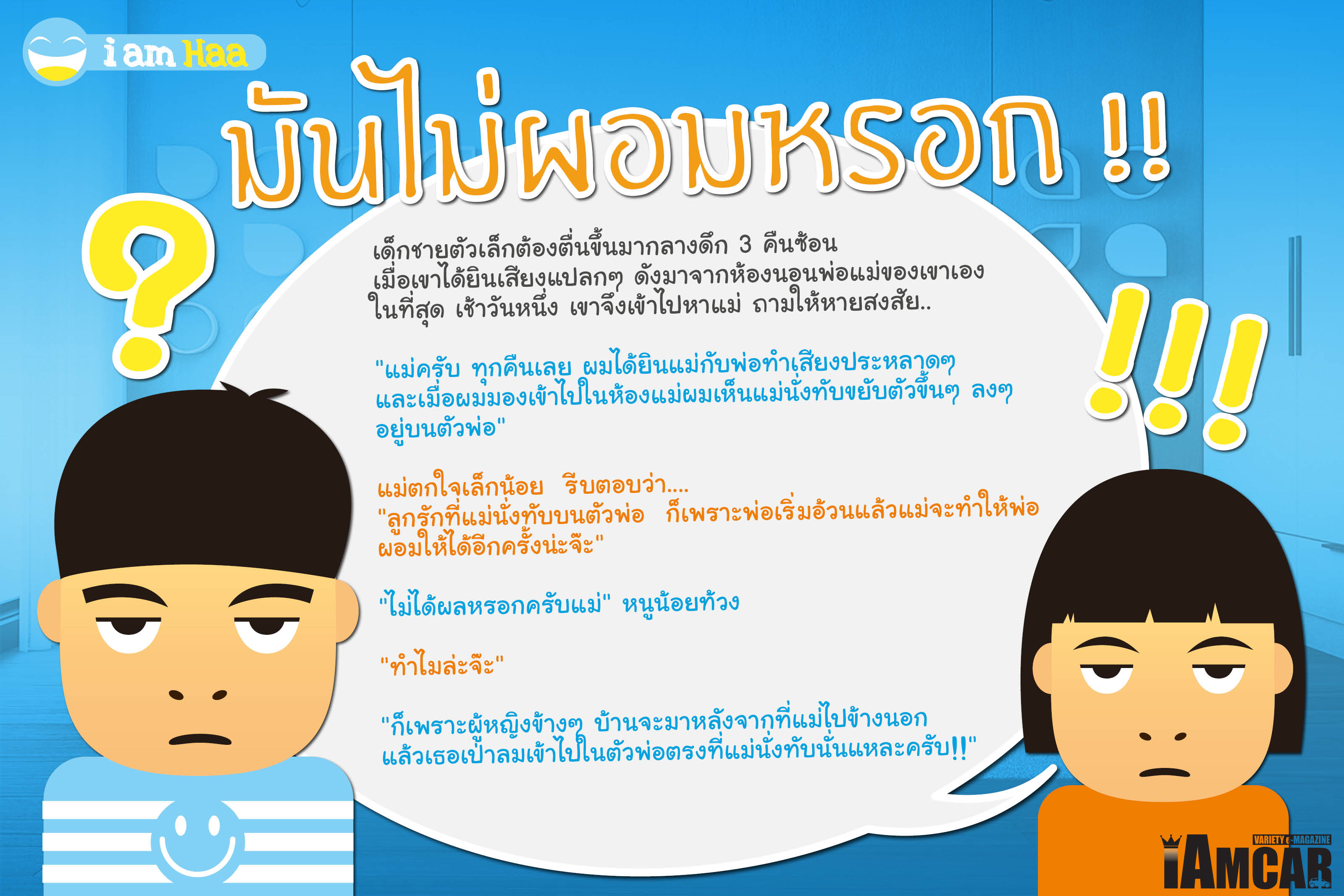 เด็กชายตัวเล็กต้องตื่นขึ้นมากลางดึก 3 คืนซ้อน เมื่อเขาได้ยินเสียงแปลกๆ ดังมาจากห้องนอนของพ่อแม่ของเค้าเอง ในที่สุด !! เช้าวันหนึ่ง เขาจึงเข้าไปหาแม่ ถามให้หายสงสัย … “แม่ครับ ทุกคืนเลย ผมได้ยินแม่กับพ่อทำเสียงประหลาดๆ และเมื่อผมมองเข้าไปในห้องแม่ ผมเห็นแม่นั่งทับ ขยับตัวขึ้นๆ ลงๆ อยู่บนตัวพ่อ”