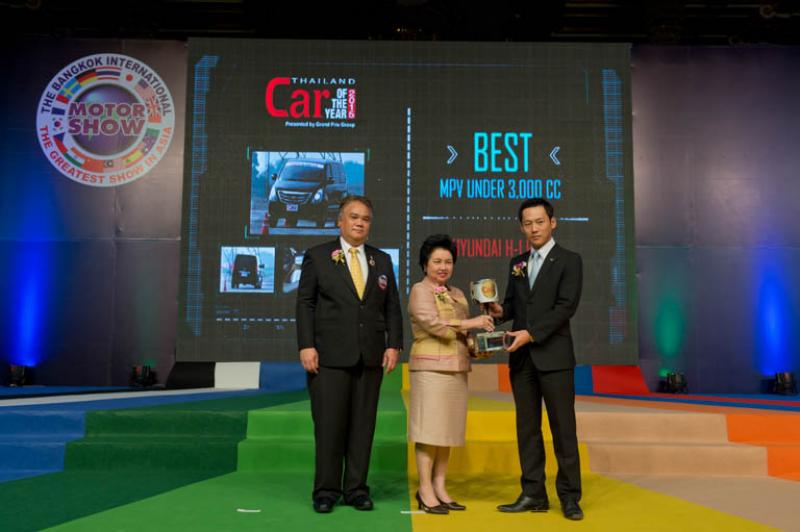 โยชิกาซึ โคนิชิ ผู้บริหาร บริษัท ฮุนได มอเตอร์ (ไทยแลนด์) จำกัด เป็นตัวแทนขึ้นรับรางวัลเนื่องในโอกาสที่ The New Hyundai H-1 Elite รถยนต์ Luxury MPV สามารถคว้ารางวัลรถยนต์ยอดเยี่ยมประจำปี 2015 ประเภท “Best MPV under 3,000 c.c.” จากดร.อรรชกา สีบุญเรือง ปลัดกระทรวงอุตสาหกรรม ในงานบางกอกอินเตอร์เนชั่นแนล มอเตอร์โชว์ ครั้งที่ 36 ที่จัดโดยบริษัท กรังด์ปรีซ์ อินเตอร์เนชั่นแนล จำกัด