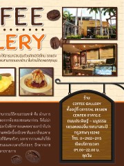 Coffee Gallery Coffee Gallery ร้านกาแฟโล่งโปร่งสบายตา ให้อารมณ์อบอุ่นด้วยสีดเอิร์ธโทน ตกแต่ง ด้วยกระจกทั้งหมดท�าให้มองเห็นวิวด้านนอกและสามารถมองเข้ามาในร้านได้ตลอดทุกมุม ร้าน Coffee Gallery ตั้งอยู่ที่ Crystal Design ผ่านกรรมวิธีตามธรรมชาติ คือ ผ่านการ Center อาคาร E ย่อยจากท้องของชะมดมาก่อน จึงไม่น่า ถนนประดิษฐ์ - มนูธรรม แปลกใจที่ราคาจะแพงเพราะเขาว่ากันว่า แขวงคลองจั่น เขตบางกะปิ กาแฟชนิดนี้จะมีรสชาติและกลิ่นเฉพาะ กรุงเทพฯ 10240 ตัวที่พิเศษจริงๆ นอกจากกาแฟแล้วก็ยัง โทร. 0-2102-2115 มีขนมและเบเกอรี่อร่อยๆ อีกมากมาย เปิดบริการเวลา หลายรายการ 09.00-22.00 น. ทุกวัน