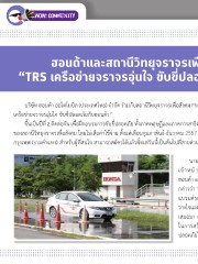 ฮอนด้าและสถานีวิทยุจราจรเพื่อสังคม ร่วมกันจัดโครงการ “TRS เครือข่ายจราจรอุ่นใจ ขับขี่ปลอดภัยกับฮอนด้า” ต่อเนื่องเป็นปีที่ 2 บริษัท ฮอนด้า ออโตโมบิล (ประเทศไทย) จ�ากัด ร่วมกับสถานีวิทยุจราจรเพื่อสังคม FM 99.5 จัดอบรมโครงการ “TRS เครือข่ายจราจรอุ่นใจ ขับขี่ปลอดภัยกับฮอนด้า” ขึ้นเป็นปีที่ 2 ติดต่อกัน เพื่อฝึกอบรมการขับขี่ปลอดภัย ทั้งภาคทฤษฎีและภาคการสาธิต ให้กับสมาชิกและผู้ฟังรายการ ของสถานีวิทยุจราจรเพื่อสังคม โดยไม่เสียค่าใช้จ่าย ตั้งแต่เดือนกุมภาพันธ์-ธันวาคม 2557 ณ ศูนย์ขับขี่ปลอดภัย ฮอนด้า กรุงเทพ (รามค�าแหง) ส�าหรับผู้ที่สนใจ สามารถสมัครได้แล้วตั้งแต่วันนี้เป็นต้นไปที่สายด่วน โทร. 1255 ตลอด 24 ชั่วโมง นายพิทักษ์ พฤทธิสาริกร ประธาน เจ้าหน้าที่บริหารปฏิบัติการ บริษัท ฮอนด้า ออโตโมบิล (ประเทศไทย) จ�ากัด กล่าวว่า “ในฐานะที่ ฮอนด้า เป็นหนึ่งใน แบรนด์รถยนต์ยอดนิยมที่ได้รับความไว้ วางใจและความเชื่อมั่นจากลูกค้าคนไทย เสมอมา ฮอนด้าตระหนักถึงความส�าคัญ ในการสร้างสังคมไทยที่ค�านึงถึงความ ปลอดภัยในการใช้รถใช้ถนนอย่างถูกต้อง