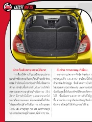 ห้องเก็บสัมภาระบรรจุได้มาก ขับง่าย การควบคุมดีเยี่ยม การเลือกใช้คานรับแรงบิดแบบปลาย นอกจากรูปทรงกะทัดรัดง่ายต่อการ แบนส�าหรับระบบกันสะเทือนด้านหลัง ช่วย ควบคุมแล้ว CELERIO รุ่นใหม่นี้ยังมี เสริมก�าลังของโครงช่วงล่างให้แข็งแกร่ง ต�าแหน่งเกียร์อยู่สูง ซึ่งเอื้อต่อการบังคับ ส่วนการขยับพื้นห้องเก็บสัมภาระให้ต�่า ได้โดยสะดวกอย่างโดดเด่น และต�าแหน่งที่ ลงช่วยมอบความจุห้องเก็บสัมภาระ 254 นั่งปรับสูงเอื้อให้มองทัศนวิสัยรอบทิศทาง ลิตร* มีการค�านึงถึงความสะดวกเวลาใส่ ได้ดี เพื่อเพิ่มความสะดวกยามขับขี่ให้สูง ของหรือยกของออก ด้วยการจัดพื้นที่เปิด ขึ้น ต�าแหน่งเบาะสูงกับช่องประตูเปิดด้าน โล่งขนาดใหญ่ส�าหรับสัมภาระ กว้างสูงสุด ข้างขนาดใหญ่ท�าให้เข้าออกรถได้ง่าย 1,020 มม. ยาวสูงสุด 751 มม. และความสูง ของการเปิดประตูท้ายระดับต�่าที่ 692 มม.