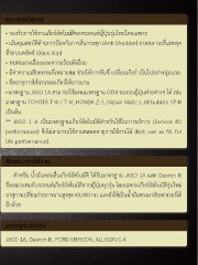 คุณสมบัติพิเศษ • รองรับการใช้งานเกียร์อัตโนมัติของรถยนต์ญี่ปุ่นรุ่นใหม่โดยเฉพาะ • เน้นคุณสมบัติด้านการป้องกันการสั่นกระตุก (Anti-Shudder) จากสภาวะลื่นสะดุด ที่ระบบคลัตช์ (Stick-Slip) • ทนต่อแรงเฉื่อยและความร้อนดีเยี่ยม • มีค่าความเสียดทานที่เหมาะสม ช่วยให้การขับขี่ เปลี่ยนเกียร์ เป็นไปอย่างนุ่มนวล • ยืดอายุการใช้งานของเกียร์ให้ยาวนาน • มาตรฐาน JASO 1A สามารถใช้แทนมาตรฐาน OEM ของรถญี่ปุ่นค่ายต่างๆ ได้ เช่น มาตรฐาน TOYOTA T-III / T-IV, HONDA Z-1, Nissan Matic-J, Mitsubishi SP-III เป็นต้น ** JASO 1 A เป็นมาตรฐานเกียร์อัตโนมัติส�าหรับใช้ในการบริการ (Service fill performance) จึงไม่สามารถใช้งานตลอดอายุการใช้งานได้ (Not use as fill for life performance) ลักษณะการใช้งาน ส�าหรับ น�้ามันหล่อลื่นเกียร์อัตโนมัติ ได้รับมาตรฐาน JASO 1A และ Dexron III จึงเหมาะสมกับรถยนต์เกียร์อัตโนมัติจากญี่ปุ่นทุกรุ่น โดยเฉพาะเกียร์อัตโนมัติรุ่นใหม่ อายุการเปลี่ยนถ่ายยาวนานสูงสุด 40,000 กม. และยังใช้เป็นน�้ามันพวงมาลัยเพาเวอร์ได้ อีกด้วย มาตรฐานอ้างอิง JASO 1A, Dexron III, FORD MERCON, ALLISON C-4