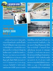 Thailand Super 2000 Race 2 มาถึงช่วงบ่ายบรรยากาศสนามเกิน อันดับขึ้นมาเป็นหัวแถวได้ตั้งแต่รอบ เนื่องจากน�าห่าง หมายเลข 25 กิตติพล คาดเดาทั้งแดดร้อนจัด และฟ้าครึ้มสลับ แรกของการแข่งขัน โดยมีอันดับ 2 เป็น ปราโมทย์ ณ อยุธยา ที่อาศัยจังหวะที่ดี กันไปท�าให้ทีมแข่งคาดเดาประเภทของ หมายเลข 90 พิษณุ ศิริมงคลเกษม ที่ขยับ กว่าขยับแซง หมายเลข 37 มานัต กุละปา ยางที่จะใช้ลงท�าการแข่งขันได้ยากมาก ขึ้นมาจากอันดับที่ 3 ในขณะที่ มั่นคง ลานนท์ จาก Toyota Team Thailand เมื่อรถแข่งทั้ง 13 เข้าประจ�ากริดสตาร์ท เสถียรถิระกุล หมายเลข 11 หล่นลงมา ขึ้นมาได้เป็นอันดับที่ 3 ในขณะที่จักร โดยมีหมายเลข 71 ศุภชัย วีรบวรพงศ์ จาก เป็นอันดับ 3 ส่วนจักรทอง หมายเลข 3 ทอง หมายเลข 3 รถมีปัญหา ซึ่งอันดับ ทีม Siam Gas Racing Kong กลายเป็น ที่คาดว่ารถจะเกิดมีปัญหาต�าแหน่งตกมา ในช่วงท้ายการแข่งขัน คือ หมายเลข โพล โพสิชั่นไปจากการ Reverse แค่ไฟ เป็นอันดับที่ 5 ท�าให้ 5 อันดับหัวแถวเป็น 99, 90, 25 และ 37 ก่อนจบการแข่งขัน สัญญาณดับ ติณฑ์ ศรีตรัย หมายเลข 99 หมายเลข 99, 90, 37, 25 และ 3 จนถึง เพียง 2 รอบ เพราะ ธ�ารง มหาด�ารงค์กุล จาก PTT Research And Technology ช่วงกลางการแข่งขันเริ่มมีฝนโปรยลงมา หมายเลข 24 รับส้มหล่นจบการแข่งขัน Institute ในอันดับที่ 5 โชว์ความเป็น อันดับ 3, 4 และ 5 ได้กลายเป็นไฮไลต์ ในอันดับที่ 5 แชมป์ออกสตาร์ทได้ดี และสามารถขยับ ของการแข่งขันที่น่าลุ้นกว่าต�าแหน่งจ่าฝูง