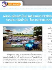 ฟอร์ด เฟียสต้า ใหม่ เครื่องยนต์ ECOBOOST เทอร์โบ พิสูจน์ความเป็นผู้น�าด้าน การประหยัดน�้ามัน ในการแข่งขันทดสอบความประหยัดกับผู้บริโภคตัวจริง เทอร์โบ” ณ สนามแข่งรถโบนันซ่า อินเตอร์เนชั่นแนล สปีดเวย์ จังหวัดนครราชสีมา สำาหรับการแข่งขันครั้งนี้ มีประชาชนทั่วไปเกือบ 100 คน ให้ความสนใจเข้าร่วมสมัครเพื่อ ทดสอบและแข่งขัน นอกจากนี้ เรายังได้รับเกียรติจากผู้สื่อข่าวสายยานยนต์ถึง 8 ท่าน ที่ทาง ้ ฟอร์ดเชิญมาเข้าร่วมทดสอบการขับประหยัดนำามันและเป็นผู้ให้คำาแนะนำาแก่ผู้เข้าแข่งขัน ระหว่างการขับขี่ในครั้งนี้อีกด้วย ในการแข่งขันครั้งนี้บริษัทฯ ได้นำา ฟอร์ด เฟียสต้า ใหม่ เครื่องยนต์ EcoBoost เทอร์โบ มาใช้ ในการทดสอบทั้งหมด 6 คัน แบ่งเป็นรุ่น 5 ประตู EcoBoost Sport เกียร์อัตโนมัติ 3 คัน และ รุ่น 4 ประตู EcoBoost Titanium เกียร์อัตโนมัติ 3 คัน ซึ่งรถทั้ง 2 รุ่น ได้ถูกทดสอบภายใต้การ จำาลองการขับขี่ในเขตชานเมือง (“extra urban” driving cycle) ที่สะท้อนถึงวิธีการขับขี่ที่ใกล้ เคียงกับการขับขี่จริงในชีวิตประจำาวัน ้ ้ เพื่อพิสูจน์ความเป็นผู้นำาด้านการประหยัดนำามันและสมรรถนะ ผู้แข่งขันที่ทำาอัตราสิ้นเปลืองนำามันได้ดีที่สุด 3 อันดับแรกในการแข่งขันทดสอบความประ ของฟอร์ด เฟียสต้า ใหม่ เครื่องยนต์ EcoBoost เทอร์โบ ฟอร์ดได้เชิญผู้ หยัดของฟอร์ด เฟียสต้า ใหม่ เครื่องยนต์ EcoBoost เทอร์โบ ทั้ง 2 รุ่น ยังได้รับรางวัลรวมมูลค่า บริโภคซึ่งเป็นบุคลทั่วไปเข้าร่วมแข่งขันเพื่อทดสอบสมรรถนะและความ ทั้งสิ้น 70,000 บาท แบ่งเป็นรางวัลสำาหรับผู้ชนะเลิศมูลค่า 20,000 บาท รางวัลสำาหรับรองชนะ ประหยัดในกิจกรรม “ท้าแรง ท้าประหยัดกับฟอร์ด เฟียสต้า EcoBoost เลิศอันดับหนึ่ง มูลค่า 10,000 บาท และรางวัลสำาหรับรองชนะเลิศอันดับสองมูลค่า 5,000 บาท