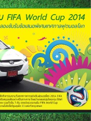 ฮุนไดน�ำทัพรถยนต์แต่งธีม FIFA World Cup 2014 ่ เดินสายคาราวานทัวกรุงเทพ ชวนลูกค้าทดลองขับรับข้อเสนอพิเศษเทศกาลฟุตบอลโลก บริษัท ฮุนได มอเตอร์ (ไทยแลนด์) จ�ำกัด จัดกิจกรรมขำนรับเทศกำลกำรแข่งขันฟุตบอลโลก 2014 FIFA World Cup ที่ฮุนได มอเตอร์ คอมปำนีเป็นผู้สนับสนุนหลักอย่ำงเป็นทำงกำร โดยน�ำรถยนต์ฮุนไดทุกรุ่น ได้แก่ Tucson, Veloster, H-1, Grand Starex รวมทั้งสิ้น 7 คัน ตกแต่งลวดลำยธีม FIFA World Cup สีสันสดใส น�ำขบวนคำรำวำนไปยังโชว์รูมฮุนได 11 แห่งทั่วกรุงเทพฯ