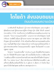โตโยต้า ส่งมอบถนนแห่งรอยยิ้ม แห่งที่ 3 ถนนต้นแบบความปลอดภัยภาคใต้ จ.ชุมพร นายพีระศักดิ์ หินเมืองเก่า ผู้ว่าราชการจังหวัดชุมพร และนายวุฒิกร สุริยะฉันทนานนท์ ผู้ช่วยกรรมการผู้จัดการใหญ่อาวุโส บริษัท โตโยต้า มอเตอร์ ประเทศไทย จำากัด ร่วมเป็นประธานในพิธีส่งมอบถนนต้นแบบแห่งความ ปลอดภัย “โครงการถนนแห่งรอยยิ้ม” แก่แขวงการทางจังหวัดชุมพร โดยมี จ่าสิบเอก ประสิทธิ์ มณีแดง ผู้อำานวยการแขวงการทางชุมพร และ บริษัท โตโย ต้าชุมพร ผู้จำาหน่ายโตโยต้า จำากัด พร้อมด้วยเครือข่ายความปลอดภัยบนท้อง ถนน ร่วมเป็นสักขีพยานในการส่งมอบโครงการปรับปรุงถนนให้ปลอดภัยใน 5 ภูมิภาคของประเทศไทย โดยถนนแห่งรอยยิ้ม จ.ชุมพร ถือเป็นแห่งที่ 3 ณ แยก ปฐมพร จ.ชุมพร โครงการ “ถนนแห่งรอยยิ้ม” (Smiling Road) เป็นหนึ่งในกิจกรรมครบ รอบ 50 ปีโตโยต้าที่ร่วมส่งความสุข สร้างรอยยิ้มให้แก่คนไทย ภายใต้แนวคิด “ถนนต้นแบบที่มีความปลอดภัยผสานด้วยสภาพแวดล้อมที่เป็นมิตรกับชุมชน” หรือ “Eco Safety Road“ เป็นการดำาเนินงานภายใต้เครือข่ายถนนสีขาว และ เครือข่ายเพื่อสิ่งแวดล้อมที่ยั่งยืน ใน 5 ภูมิภาค 5 เส้นทาง 5 จังหวัด ได้แก่ อุดรธานี เชียงใหม่ ชุมพร ฉะเชิงเทรา และสมุทรปราการ