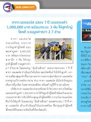 ทาทา มอเตอร์ส ฉลอง 7 ปี มอบทองค�า 1,000,000 บาท พร้อมกระบะ 3 คัน ให้ลูกค้าผู้ โชคดี รวมมูลค่ากว่า 2.7 ล้าน ทาทา มอเตอร์ส ประเทศไทย ประกาศ รางวัลลูกค้าผู้โชคดี มอบ BluEarth-A (บลูเอิร์ธ เอส) โชว์ฟอร์มพระเอกกอบกู้ภาพรวมตลาด YOKOHAMA ท่ามกลางเศรษฐกิจ ทองคำามูลค่า 1,000,000 ซบ-ปัญหาการเมืองซำ้าให้เดินสู่เป้าหมาย หลังเปิดตัว 3 เดือนกวาดยอดขายแล้วกว่า 38,000 เส้น จาก บาท พร้อมรางวัลกระบะ ที่ตั้งไว้ 65,000 เส้นในปีนี้ ส่งผลให้ยอดขายสะสม 5 เดือนที่ผ่านมาทำาได้แล้วกว่า 120,000 เส้น ลดลง ทาทาอีก 3 คัน ให้กลุ่ม จากปีที่ผ่านมาแค่ 6% บิ๊กบอสเผยหากไร้วิกฤติยอดขายฉลุยกว่านี้แน่ มั่นใจครึ่งปีที่เหลือตลาดแข่งขัน ลูกค้าผู้โชคดี รวมมูลค่ากว่า รุนแรง วิเคราะห์รถอีโคคาร์มาแรง ถึงเวลาเปลี่ยนยางใหม่ใส่แทนของเดิม ชี้ยาง BluEarth AE01 (บลู 2.7 ล้านบาท ในแคมเปญ “ลุ้นล้านชิงรถ” ฉลองการครบรอบ 7 ปี ที่ เอิร์ธ เออี 01) และ BluEarth-A (บูลเอิร์ธ เอส) จะเป็นโปรดักท์ธงรองรับความต้องการลูกค้า พร้อมเร่ง ทาทา มอเตอร์ส ดำาเนินธุรกิจในไทย มอบโชคคืนกำาไรให้กับลูกค้า จาก เติมกลยุทธ์การตลาดเข้าสู้ ทั้ง Push, Pull และ Motor Sport Marketing ควบคู่กับการขยายเครือข่าย ความเห็นกลุ่มลูกค้า ชี้รถกระบะทาทา ทนทาน คุ้มค่าคุ้มราคา และพอใจ “YCN” เพิ่มอีก 12 แห่ง เป็น 35 แห่งทั่วไทยภายในสิ้นปีนี้ เชื่อจบปีบรรลุเป้า 350,000 เส้นที่ตั้งไว้ มาตรฐานบริการหลังการขาย ส่วน ทาทา มอเตอร์ส มั่นใจกำาลังอยู่บน มร.ซาโตชิ ฟูจิตสึ (Mr.Satoshi Fujitsu) กรรมการผู้จัดการ บริษัท โยโกฮามา ไทร์ เซลส์ (ประเทศไทย) เส้นทางที่ถูกต้อง ในตลาดรถยนต์ไทย พร้อมก้าวสู่ปีที่ 8 อย่างมั่นคง จำากัด กล่าวถึงผลกระทบจากภาวะเศรษฐกิจชะลอตัว และปัญหาทางการเมืองที่ยืดเยื้อมานานตั้งแต่ บริษัท ทาทา มอเตอร์ส (ประเทศไทย) จำากัด ประกาศรางวัลพร้อม ปลายปีที่ผ่านมา ส่งผลกระทบต่อภาพรวมตลาดของ YOKO- มอบทองคำามูลค่า 1,000,000 บาท ให้กับลูกค้าผู้โชคดี พร้อมกับมอบรถ HAMA ในช่วงระยะเวลาที่ผ่านมาของปีไม่มากนัก เมื่อเทียบกับ กระบะทาทาอีก 3 คัน ให้กับกลุ่มลูกค้าผู้โชคดีอีก 3 ราย ในการแจกโชค ช่วงเดียวกันของปี 2556 ซึ่งได้รับผลกระทบมาจากภาวะ คืนกำาไรให้ลูกค้า ในแคมเปญ “ลุ้นล้านชิงรถ” ฉลองครบรอบ 7 ปี ที่ ทา เศรษฐกิจชะลอตัว ภาคอุตสาหกรรมยานยนต์หดตัว และปัญหา ทา มอเตอร์ส เข้ามาดำาเนินธุรกิจในประเทศไทย ซึ่งกลุ่มลูกค้าผู้โชคดี ทางการเมืองที่รุมเร้ามาตั้งแต่ปลายปีที่ผ่านมา ทั้งหมดได้รับมอบรางวัลเป็นที่เรียบร้อยแล้ว