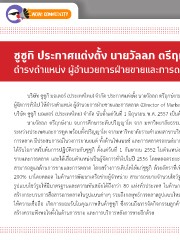 ซูซูกิ ประกาศแต่งตั้ง นายวัลลภ ตรีฤกษ์งาม ด�ารงต�าแหน่ง ผู้อ�านวยการฝ่ายขายและการตลาด บริษัท ซูซูกิ มอเตอร์ (ประเทศไทย) จำากัด ประกาศแต่งตั้ง นายวัลลภ ตรีฤกษ์งาม จากตำาแหน่ง ผู้จัดการทั่วไป ให้ดำารงตำาแหน่ง ผู้อำานวยการฝ่ายขายและการตลาด (Director of Marketing Division) บริษัท ซูซูกิ มอเตอร์ (ประเทศไทย) จำากัด นับตั้งแต่วันที่ 1 มิถุนายน พ.ศ. 2557 เป็นต้นไป นายวัลลภ ตรีฤกษ์งาม จบการศึกษาระดับปริญญาโท จาก มหาวิทยาลัยธรรมศาสตร์ สาขา ระหว่างประเทศและการฑูต พร้อมทั้งปริญญาโท จากมหาวิทยาลัยรามคำาแหงสาขาบริหารธุรกิจ และ การตลาด มีประสบการณ์ในวงการยานยนต์ ทั้งด้านไฟแนนซ์ และการตลาดรถยนต์มากว่า 15 ปี โดย ได้รับโอกาสเริ่มต้นการปฏิบัติงานกับซูซูกิ ตั้งแต่วันที่ 1 กันยายน 2552 ในตำาแหน่ง ผู้จัดการฝ่าย ขายและการตลาด และได้เลื่อนตำาแหน่งเป็นผู้จัดการทั่วไปในปี 2556 โดยตลอดระยะเวลากว่า 4 ปี สามารถดูแลด้านการขายและการตลาด โดยสร้างการเติบโตให้แก่ซูซูกิ ด้วยอัตราที่เพิ่มขึ้นมากกว่า 200% มาโดยตลอด ในด้านการพัฒนาเครือข่ายผู้จำาหน่าย สามารถขยายจำานวนโชว์รูม และพัฒนา รูปแบบโชว์รูมให้มีมาตรฐานและความทันสมัยได้ถึงกว่า 80 แห่งทั่วประเทศ ในด้านการตลาดมีการ สร้างกระบวนการสื่อสารการตลาดในรูปแบบต่างๆ รวมถึงกลยุทธ์การตลาดรูปแบบใหม่ เพื่อให้ลูกค้า ให้ความเชื่อถือ เกิดการยอมรับในคุณภาพสินค้าซูซูกิ ซึ่งรวมถึงการจัดกิจกรรมลูกค้าสัมพันธ์ เพื่อ สร้างความพึงพอใจทั้งในด้านการขาย และการบริการหลังการขายอีกด้วย