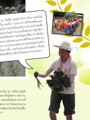 มร. โทมิโอ ฟุกุสุมิ ได้กล่ำวถึงควำมส�ำคัญ ของกิจกรรมนี้ว่ำ “นอกจำกกำรที่บริดจสโตนและ ผู้ร่วมกิจกรรมจะได้ลงแรงในกำรท�ำประโยชน์เพื่อ สังคมร่วมกันแล้ว กิจกรรมนี้ ยังช่วยกระตุ้นให้เรำ ทุกคนได้เห็นถึงควำมส�ำคัญของพืชอำหำร ซึ่งเป็น เรื่องควำมมั่นคงทำงอำหำรที่ทั่วโลกต่ำงให้ควำม กังวล หำกในอนำคตเรำจะประสบปัญหำในด้ำน นี้กันมำกขึ้น และในประเทศไทยมีข้ำว ซึ่งเป็น พืชพันธุ์ที่นับว่ำเป็นหัวใจแห่งอำหำรของโลก” กิจกรรม Green Hands Special รวมใจพลิกฟื้นวิถีไทย ร่วมใจลงแรง...ด�ำนำ ซึ่งน�ำโดย มร. โทมิโอ ฟุกุสุมิ กรรมกำรผู้จัดกำร บริษัท ไทยบริดจสโตน จ�ำกัด พร้อมด้วยผู้ร่วมกิจกรรมกว่ำ 300 คนจำกทั้งผู้บริหำร พนักงำน บริดจสโตน ตัวแทนชุมชน นักศึกษำซึ่งได้รับทุนไทยบริดจสโตนจำก 12 มหำวิทยำลัย แฟนคลับนิตยสำรสำรคดี นักข่ำว คณะครูและนักเรียนได้ร่วมกันด�ำนำเพื่อสร้ำงสรรค์ประโยชน์ให้กับโรงเรียน ซึ่งเมื่อครบ 105 วันโดยประมำณ ข้ำวที่ปลูกก็จะแตกรวงสุกเหลืองเป็นสีทองพร้อมที่จะเก็บเกี่ยว รำยได้จำกกำรจ�ำหน่ำยผลผลิตจะเป็นประโยชน์เพื่อ กำรจัดซื้ออุปกรณ์กำรศึกษำให้กับโรงเรียนชุมชนวัดหน้ำไม้ สมดังเจตนำรมณ์ของโครงกำร