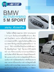 BMW ACTIVEHYBRID 5 M SPORT งดงาม…หัวจรดท้าย ในเรื่องการดีไซน์ภายนอกของ BMW ActiveHybrid 5 M Sport ถือเป็นเอกลักษณ์ที่มีมาช้านาน เพียง แต่ว่าในรุ่นใหม่ๆ จะน�าการดีไซน์ที่ทันสมัยกับหลัก อากาศพลศาสตร์ที่ดี มาผสมกับอัตลักษณ์ที่มีมานาน ของ BMW ที่ส�าคัญรถคันนี้เป็นรุ่นพิเศษที่เรียกว่า “M Sport” จึงมีการปรับดีไซน์ให้ดูเป็นสปอร์ตซีดานมาก ขึ้น ตั้งแต่สัญลักษณ์ “ไตคู่” ที่ถูกขนาบไว้ด้วยชุดไฟ หน้า LED ซึ่งสามารถปรับการกระจายแสงให้เหมาะ สมกับเส้นทางที่ขับขี่ เพิ่มแสงสว่างในมุมอับในขณะเข้า โค้ง และระบบปรับการท�างานไฟสูงอัตโนมัติ ซึ่งระบบ จะปรับการท�างานให้สอดคล้องกับการขับขี่ในทุกสภาพ ถนน นอกจากนี้ระบบปรับการท�างานไฟสูงอัตโนมัติ จะปรับการท�างานของไฟสูง ตลอดเวลาด้วยการตรวจ สอบต�าแหน่งรถที่อยู่ข้างหน้าหรือที่ขับมาจากทิศตรง