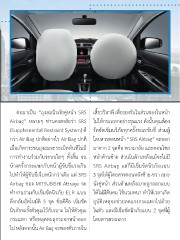 ต่อมาเป็น “ถุงลมนิรภัยคู่หน้า SRS เสี้ยววินาที เพื่อรองรับในส่วนของใบหน้า Airbag” หลายๆ ท่านคงสงสัยว่า SRS ไม่ให้กระแทกอย่างรุนแรง ดังนั้นคุณต้อง (Supplemental Restraint System) ดี รัดขัดเข็มนริภัยทุกครั้งขณะขับขี่ ส่วนผู้ กว่า Air Bag ปกติอย่างไร Air Bag ปกติ โดยสารตอนหน้า “SRS Airbag” จะออก เมื่อเกิดการชนถุงลมจะระเบิดทันทีไม่มี มาจาก 2 จุดคือ พวงมาลัย และคอนโซล การท�างานร่วมกับระบบใดๆ ทั้งสิ้น จน หน้าด้านซ้าย ส่วนในด้านหลังแม้จะไม่มี บ้างครั้งกระแทกกับหน้าผู้ขับขี่แรงเกิน SRS Airbag แต่ก็มีเข็มขัดนิรภัยแบบ ไปท�าให้ผู้ขับขี่เจ็บหนักกว่าเดิม แต่ SRS 3 จุดให้ผู้โดยสารตอนหลังซ้าย-ขวา เบาะ Airbag ของ MITSUBISHI Attrage จะ นั่งคู่หน้า ส่วนด้านหลังเบาะถูกออกแบบ ท�างานร่วมกับเข็มขัดนิรภัย ELR แบบ ให้ไม่มีสันคม ใช้นวมหนา ท�าให้เวลาเกิด ดึงกลับอัตโนมัติ 3 จุด ข้อดีคือ เข็มขัด อุบัติเหตุจะช่วยลดแรงกระแทกไปด้วย นิรภัยจะรั้งตัวคุณไว้กับเบาะ ไม่ให้ตัวคุณ ในตัว และมีเข็มขัดนิรภัยแบบ 2 จุดที่ผู้ กระแทก หรือหลุดทะลุกระจกหน้าออก โดยสารตรงกลาง ไป หลังจากนั้น Air Bag จะพองตัวภายใน