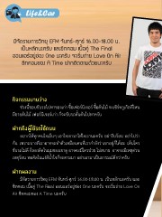 มีจัดรายการวิทยุ EFM จันทร์-ศุกร์ 16.00-18.00 น. เป็นหลักนะครับ และซิทคอม เนื้อคู่ The Final ออนแอร์อยู่ช่อง One นะครับ จะเริ่มถ่าย Love On Air ซิทคอมของ A Time ฝากติดตามด้วยนะครับ กิจกรรมยามว่าง ช่วงนี้ชอบขับรถไปหาของเก่า ซื้อเฟอร์นิเจอร์ ซื้อต้นไม้ จะเซิร์ทกูเกิลที่ไหน มีขายต้นไม้ เฟอร์นิเจอร์เก่า ก็จะขับรถดั้นด้นไปหาครับ ฝากถึงผู้ใช้รถใช้ถนน อยากให้ทุกคนใจเย็นๆ เอาใจเขามาใส่ใจเรานะครับ อย่ารีบร้อน อย่าไปว่า กัน เพราะบางทีเราอาจจะท�าตัวเหมือนคนที่เราก�าลังว่าเขาอยู่ก็ได้นะ เห็นใคร ขับรถไม่ดี ก็ลองคิดในมุมของเขาดู อาจจะมีใครป่วย ไม่สบาย อาจจะมีเหตุด่วน เหตุร้อน พอคิดในแง่ดีน�้าใจก็จะตามมา อย่าเอามาเป็นอารมณ์ดีกว่าครับ ฝากผลงาน มีจัดรายการวิทยุ EFM จันทร์-ศุกร์ 16.00-18.00 น. เป็นหลักนะครับ และ ซิทคอม เนื้อคู่ The Final ออนแอร์อยู่ช่อง One นะครับ จะเริ่มถ่าย Love On Air ซิทคอมของ A Time นะครับ