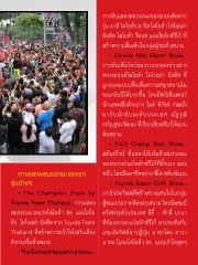 การขับแสดงสมรรถนะของรถยนต์หลาก รุ่น อาทิ โตโยต้า ยาริส โตโยต้า โคโรลล่า อัลติส โตโยต้า วีออส และไฮลักซ์วีโก้ ที่ สร้างความตื่นเต้นในกลุ่มผู้ชมทั่วสนาม • Corolla Altis ESport Show... การขับเพื่อโชว์สมรรถนะของช่วงล่าง ของรถยนต์โตโยต้า โคโรลล่า อัลติส ที่ ถูกออกแบบเพื่อเพิ่มความสนุกสนานใน ขณะขับขี่ให้มากขึ้น โดยมีพรีเซ็นเตอร์ นักแสดงชื่อดังอย่าง ไมค์ พิรัชต์ ร่วมนั่ง มากับนักขับระดับประเทศ ณัฐวุฒิ เจริญสุขะวัฒนะ ที่เรียกเสียงเชียร์ได้แบบ ล้นหลาม • VIGO Champ Stun Show… สตันท์โชว์ ที่แสดงให้เห็นถึงสมรรถนะ ของรถกระบะไฮลักซ์วีโก้ที่ทั้งแรง และ การแสดงสมรรถนะของรถ หนึบ โดยมืออาชีพอย่าง พี่โต สตันท์แมน รุ่นต่างๆ • Toyota Super Drift Show… • The Champion Show by การโชว์ดริฟท์ที่สร้างความสนใจในกลุ่ม Toyota Team Thailand…การแสดง ผู้ชมแบบเกาะติดขอบสนาม โดยมีแชมป์ สมรรถนะรถแข่งโตโยต้า 86 และโตโย ดริฟท์ระดับประเทศ กีกี้ – ศักดิ์ นานา ต้า โคโรลล่า อัลติส จาก Toyota Team ที่ขับรถกระบะไฮลักซ์วีโก้ มาประชันกับ Thailand ที่สร้างความเร้าใจไปกับเสียง แชมป์ดริฟท์ชาวญี่ปุ่น มาซาโตะ คาวา ดังกระหึ่มทั่วสนาม บาตะ ในรถโตโยต้า 86 แบบเร้าใจสุดๆ • The Excited Happening Show…
