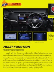 ระบบสตาร์ทเครื่องยนต์แบบอัจฉริยะ ADVANCE TOUCH AUDIO ระบบเครื่องเสียง หน้าจอสัมผัส ขนาด 7 นิ้ว รองรับการเชื่อมต่อภาพ และเสียงผ่าน HDMI หน้าจอแสดงผลการเชื่อมต่อโทรศัพท์ไร้สาย รองรับระบบสั่งการด้วยเสียง Siri ฮอนด้า แจ๊ช ใหม่ จัดครบทุกเทคโนโลยีทันสมัยมาไว้ในรถคันเดียว ทั้งระบบควบคุม อัจฉริยะที่ควบคุมได้ดั่งใจเพียงปลายนิ้วสมผัส อาทิ ระบบเครื่องเสียงหน้าจอสัมผัสขนาด 7 นิ้ว แบบ Advanced Touch ระบบสั่งการด้วยเสียง Siri Eyes Free Mode (ส�าหรับ iPhone 4s ขึ้นไป) ระบบปรับอากาศอัตโนมัติพร้อมแผงควบคุมแบบสัมผัส ระบบสตาร์ทเครื่องยนต์ แบบอัจฉริยะ (One Push Ignition System) ระบบควบคุมประตูอัจฉริยะ (Honda Smart Key System) และสะดวกสบายยิ่งขึ้นด้วยพวงมาลัยแบบมัลติฟังก์ชั่นที่ให้การควบคุมง่ายดาย ไม่ว่ากิจกรรมในทุกวันของคุณจะเป็นแบบไหน คุณก็ควบคุมได้สนุกยิ่งขึ้น