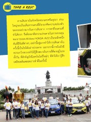 การเดินทางในจังหวัดพระนครศรีอยุธยา ส่วน ใหญ่จะเป็นเส้นทางแคบที่ต้องอาศัยความคล่องตัว ของรถอย่างมากในการเดินทาง การหาที่จอดรถที่ ท�าได้ยาก จึงต้องอาศัยความง่ายดายในการควบคุม ของการจอด All New HONDA JAZZ เป็นรถอีกหนึ่ง คันที่มีข้อดีต่างๆ เหล่านี้อยู่มากท�าให้การเดินทางใน ครั้งนี้เป็นไปได้อย่างง่ายดาย นอกจากนี้ภายในยังมี ความกว้างขวางท�าให้รู้สึกสบายในการที่ต้องอยู่ในรถ ทั้งวัน ที่ส�าคัญยังมีเทคโนโลยีใหม่ๆ ที่ท�าให้เรารู้สึก เพลิดเพลินตลอดการท�าดีในครั้งนี้