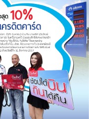 10% เติมน�้ำมัน ปตท. รับเงินคืนสูงสุด ่ เมือช�ำระผ่ำนเซ็นทรัลเครดิตคำร์ด นายอรรถพล ฤกษ์พิบูลย์ ผู้ช่วยกรรมการผู้จัดการใหญ่การตลาดขายปลีก บริษัท ปตท. จ�ากัด (มหาชน) ร่วมกับ นายอธิศ รุจิรวัฒน์ กรรมการผู้จัดการบริษัท เจเนอรัล คาร์ด เซอร์วิสเซส จ�ากัด ผู้ให้บริการเซ็นทรัล เครดิตคาร์ด ในเครือกรุงศรี ร่วมมอบสิทธิพิเศษแก่สมาชิก เซ็นทรัลเครดิตคาร์ดกว่า 700,000 ราย ในโอกาสฉลองครบรอบ 26 ปีด้วยแคมเปญ “ช้อปได้บิน กินได้คืน” โดยแคมเปญ “กินได้คืน” สมาชิกบัตรจะได้รับเครดิตเงินคืนสูงสุด 10% เมื่อเติมน�้ามันทุก 800 บาทต่อใบเสร็จที่ปั๊ม ปตท. ที่ร่วมรายการทั่วประเทศเพียงมี ยอดใช้จ่ายสะสมในหมวดร้านอาหารทั่วไทย 3,000 บาทขึ้นไปต่อเดือน ทั้งนี้ สมาชิกบัตรต้องลงทะเบียนร่วมรายการด้วยการส่ง SMS พิมพ์ DIN (วรรค) ตามด้วยหมายเลขบัตร 16 หลัก ส่งไปที่ 081 2782222 ตั้งแต่วันนี้ถึง 31 สิงหาคม 2557