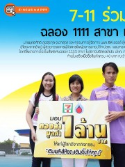 7-11 ร่วมกับ ปตท. ฉลอง 1111 สำขำ แจกทอง 1 ล้ำนบำท นายยุทธศักดิ์ ภูมิสุรกุล (ขวาสุด) รองกรรมการผู้จัดการ บมจ.ซีพี ออลล์ ผู้บริหารเซเว่น อีเลฟเว่น ร้านอิ่มสะดวกของคนไทย ร่วมกับ นายอรรถพล ฤกษ์พิบูลย์ (ที่สองจากซ้าย) ผู้ช่วยกรรมการผู้จัดการใหญ่ตลาดขายปลีก ปตท. มอบทองค�ามูลค่า 1,000,000 บาท (หนึ่งล้านบาท) ให้กับ นางรัชนี อินจักร จาก จ.เชียงใหม่ ผู้ โชคดีในรายการโปรโมชั่นพิเศษฉลอง 1111 สาขา ในสถานีบริการน�้ามัน ปตท. ภายใต้ชื่อโครงการ “เติมพลังให้รถ เติมอิ่มให้คุณ ลุ้นทองมูลค่า 1 ล้านบาท” โดยส่งรหัส ท้ายใบเสร็จเมื่อซื้อสินค้าครบ 40 บาท ณ ร้านเซเว่น อีเลฟเว่น ภายในสถานีบริการน�้ามัน ปตท.