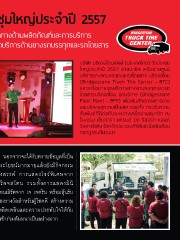 บริดจสโตน จัดประชุมใหญ่ประจ�ำปี 2557 ่ ่ เพือเพิมศักยภาพความเป็นผู้น�าทางด้านผลิตภัณฑ์และการบริการ แก่สมาชิกเครือข่ายศูนย์บริการ และจุดบริการด้านยางรถบรรทุกและรถโดยสาร บริษัท บริดจสโตนเซลส์ (ประเทศไทย) จัดประชุม ใหญ่ประจ�ำปี 2557 แก่สมำชิก เครือข่ำยศูนย์ บริกำรยำงรถบรรทุกและรถโดยสำร บริดจสโตน (Bridgestone Truck Tire Center - BTC) และเครือข่ำยจุดบริกำรยำงรถบรรทุกและรถ โดยสำรบริดจสโตน จุดบริกำร (Bridgestone Fleet Point - BFP) เพื่อเพิ่มศักยภำพกำรขำย และบริกำรสู่ควำมเป็นเลิศ รวมทั้ง กระชับควำม สัมพันธ์ที่ดีต่อกันระหว่ำงเครือข่ำยสมำชิก ณ โรงแรม เซ็นทำร่ำ แกรนด์ บีช รีสอร์ท แอนด์ วิลล่ำ หัวหิน จังหวัดประจวบคีรีขันธ์ เมื่อต้นเดือน กรกฎำคมที่ผ่ำนมำ นอกจากจะได้รับทราบข้อมูลที่เป็น ประโยชน์มากมายแล้วยังมีกิจกรรม สังสรรค์ การแสดงโชว์พิเศษจาก บริดจสโตน รวมทั้งการแสดงมินิ คอนเสิร์ตจาก เจ เจตริน พร้อมลุ้นรับ ของรางวัลส�าหรับผู้โชคดี สร้างความ เพลิดเพลินและความประทับใจให้กับ ผู้เข้าร่วมสัมมนาเป็นอย่างมาก