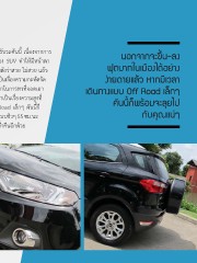 ความโดดเด่นของภายนอก All-New FORD Ecosport ถือว่าเป็นตัวชูโรงที่ดีส�าหรับรถคันนี้ เนื่องจากการ นอกจากจะขึ้น-ลง ผสมข้อดีระหว่างความคล่องตัวของคอมแพ็คคาร์กับความสูงและความอเนกประสงค์ของ SUV ท�าให้มีหน้าตา ออกมาดูแข็งแกร่ง สูง และกะทัดรัด เรื่องของความสวยงามของตัวรถเป็นเรื่องนานาจิตตังว่าสวย ไม่สวย แล้ว ฟุตบาทในเมืองได้อย่าง แต่ใครจะชอบแบบไหน ผมขอไปแนะน�าอรรถประโยชน์ที่คันนี้มีให้ดีกว่าอย่างแรกต้องเป็นเรื่องความกะทัดรัด ง่ายดายแล้ว หากมีเวลา เหมาะสมมากที่จะเป็นรถที่น�ามาใช้ในเมืองไร้ปัญหาในการเข้าซอยเล็กซอยน้อย ไร้ปัญหาในการหาที่จอดเอา เดินทางแบบ Off Road เล็กๆ เป็นว่า Eco Car จอดได้ All-New FORD Ecosport จอดได้ไม่น้อยหน้าเช่นกัน ต่อมาเป็นเรื่องความสูงที่ คันนี้ก็พร้อมจะลุยไป นอกจากจะขึ้น-ลง ฟุตบาทในเมืองได้อย่างง่ายดายแล้ว หากมีเวลาเดินทางแบบ Off Road เล็กๆ คันนี้ก็ พร้อมจะไปลุยกับคุณแน่ๆ อีกอย่างหากเกิดเหตุการณ์ไม่คาดฝันน�้าท่วมอีก คันนี้ลุยน�้าได้แบบชิวๆ 55 ซม.นะ กับคุณแน่ๆ ครับ ส่วนตัวผมถือว่าอเนกประสงค์ดีไม่น้อย แถมยังมี Sun Roof ให้ผมนั่งชมดาวยามค�่าคืนอีกด้วย