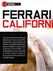 FERRARI CALIFORNIA T California เป็นรถในคลาสแกรนด์ ทัวเรอร์ของ Ferrari ออกมาสร้าง ชื่อเสียงให้ชาวโลกรู้จักตั้งแต่ปี 2008 ณ ปัจจุบันในเวอร์ชั่นปี 2015 พัฒนาเอาใจผู้รักความเร็วกระเป๋า หนักด้วยการพ่วงรหัสลับ “T” เข้าไปเพื่อประกาศบอกว่าเวอร์ชั่น นี้ แรงกว่าเก่าแน่นอน เนื่องจาก มีระบบอัดอากาศแบบเทอร์โบมา การันตีม้าล�าพอง
