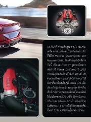 3.6 วินาที ความเร็วสูงสุด 316 กม./ชม. เครื่องยนต์บล๊อคนี้เป็นบล็อคเดียวกับ ที่ใช้ใน Maserati Quattroporte และ Maserati Ghibli โดยตัวเลขก�าลังที่ต่าง กันนี้ เป็นผลมาจากการจูนของวิศวกร เฟอร์รารี่ Ferrari California T 2015 การเพิ่มประสิทธิภาพให้เครื่องยนต์ V8 ด้วยเทอร์โบชาร์จ ช่วยให้ California T มี อัตราสิ้นเปลืองเชื้อเพลิงลดลง 15% เมื่อ เทียบกับรุ่นก่อนหน้า และสูงสุด 49% ใน เกียร์ 7 อัตราการคายคาร์บอนไดออกไซด์ ในไอเสียลดลง 20% เหลือ 250 กรัม/กม. หรือ 0.44 กรัม/กม./แรงม้า ยังผลให้รถ California T สามารถวิ่งท�าระยะทางเพิ่ม ขึ้นอีก 15% ที่ปริมาณเชื้อเพลิงเท่ากัน