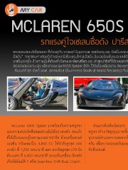 MCLAREN 650S SPIDER ่ รถแรงคู่ใจเซเลบชือดัง ปารีส ฮิลตัน สาวสวยเซเลบริตี้สุดฮอต ก็ต้องคู่กับ รถยนต์ Supercar สุดเริดหรู และ ยิ่งเป็นดาราสาวชื่อดังจากฮอลลีวู้ด อย่าง "ปารีส ฮิลตัน" ทายาทมหาเศรษฐีเจ้าของเครือโรงแรมใหญ่ ฮิลตัน อินเตอร์เนชั่นแนล และได้ชื่อว่าเป็นนักเลงรถคนหนึ่ง รถที่เลือก มาเป็นรถคู่ใจ ข้างกายนั้นก็ต้องทั้งวิเศษและพิเศษที่สุด และ ล่าสุดปารีสก็ได้ถอยรถคันใหม่มาขับเล่นสดๆร้อนๆ นั่นก็คือ รถ สปอร์ตสมรรถนะสูง แม็คลาเรน รุ่น 650S Spider สีด�า ไว้ขับโฉบเฉี่ยวย่าน Beverly Hills สมกับที่ได้รับการบันทึกชื่อใน กินเนสส์ บุ๊ค เวิลด์ ออฟ เรคคอร์ดส (Guinness Book of World Records) กับต�าแหน่ง "คนดังผู้โอเวอร์ที่สุดในโลก" McLaren 650S Spider มาพร้อมกับความหรูหรา ส่วนภายในห้องโดยสาร McLaren 650S Spider และความสปอร์ตที่ผสมผสานกันได้อย่างลงตัว สมแล้ว หรูหราด้วยวัสดุคุณภาพชั้นดี อีกทั้งยังมาพร้อมกับ ที่ได้เป็นรถแรงคู่ใจสาวแรงอย่างปารีส ด้วยเครื่องยนต์ อุปกรณ์อ�านวยความสะดวกในการขับเคลื่อนอย่างครบ เบนซิน ทวินเทอร์โบ 3,800 CC ให้ก�าลังสูงสุด 650 ครัน เพื่อความปลอดภัยและความสะดวกสบายของผู้ที่ แรงม้า ที่ 7,250 รอบ/นาที และ แรงบิดสูงสุด 678 นิว ขับขี่รถยนต์ ตัน-เมตร ที่ 6,000 รอบ/นาที ระบบขับเคลื่อน ล้อหลัง เกียร์อัตโนมัติ 7 สปีด Seamless Shift Dual Clutch