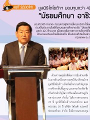 ่ มูลนิธิโตโยต้าฯ มอบทุนกว่า 40 ล้านบาท แก่เยาวชน 792 คนทัวประเทศ ระดับ “มัธยมศึกษา อาชีวศึกษา และพยาบาลศาสตร์” มร.เคียวอิจิ ทานาดะ กรรมการผู้จัดการใหญ่ บริษัท โตโยต้า มอเตอร์ ประเทศไทย จ�ากัด และดร.เสนาะ อูนากูล ประธานมูลนิธิโตโยต้าประเทศไทย ร่วมเป็นประธานในพิธีมอบทุนการศึกษาระดับ “มัธยมศึกษา อาชีวศึกษา และพยาบาลศาสตร์” แก่เยาวชนทั่วประเทศ 792 ทุนเป็นทุนต่อเนื่อง มูลค่า 42.7ล้านบาท เพื่อขยายโอกาสทางการศึกษาให้แก่นักเรียนทั่วประเทศทั้ง 77 จังหวัด ในทุกๆระดับการศึกษา และร่วมส่งเสริมด้านการ ศึกษาของสังคมไทยให้เข้มแข็ง เป็นสังคมที่เติบโตอย่างยั่งยืน โดยมีคณะกรรมการมูลนิธิฯ ร่วมแสดงความยินดี ณ โรงแรมพลาซ่าแอทธินี กรุงเทพฯ อะ รอยัล เมอริเดียน ถนนวิทยุ กรุงเทพมหานคร ด้วยความมุ่งมั่นที่ต้องการเป็นส่วนหนึ่ง ในการขับเคลื่อนความสุขให้แก่สังคมไทย มูลนิธิโตโยต้าฯ เล็งเห็นถึงความส�าคัญของ การศึกษาขั้นพื้นฐาน และสาขาวิชาชีพ ซึ่ง เป็นส่วนส�าคัญในการขับเคลื่อนเศรษฐกิจ ของประเทศ ดังนั้น ในโอกาสครบรอบ 20 ปี มูลนิธิโตโยต้าประเทศไทย และ ครบรอบ 50 ปี บริษัท โตโยต้า มอเตอร์ ประเทศไทย จ�ากัด จึงพิจารณามอบทุน