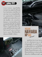 Cruise Control, กุญแจอัจฉริยะ Intelligent Key, ปุ่มสตาร์ทเครื่องยนต์ Push Start Button, ระบบปรับอากาศ แบบ Dual Zone ควบคุมอิสระซ้าย- ขวา และช่องปรับอากาศตอนหลัง และสิ่งอ�านวยความสะดวกอีกมากมาย เช่น ช่องเสียบ USB, ระบบน�าทาง Navigator, กระจกมองหลังแบบปรับ ลดแสงสะท้อนอัตโนมัติ พร้อมเข็มทิศ ดิจิตอล, ที่วางแก้วน�้าทุกที่นั่ง, ที่เก็บ แว่นตา และที่เก็บของหลายจุด รวมถึง NISSAN ไฟอ่านแผนที่ และเบาะนั่งแบบ Spinal support ที่รองรับทุกสรีระ NP300 พร้อมระบปรับไฟฟ้า 8 ทิศทาง @Chiangmai ขุมพลังของ New Nissan Navara NP300 นั้นมากับเครื่องยนต์ดีเซลรหัส YD25 แบบคอมมอนเรล 4 สูบ แถวเรียง DOHC 16 วาล์ว บล็อคล่าสุด ความจุ 2.5 ลิตร พร้อมระบบอัดอากาศเทอร์โบชาร์จเจอร์แบบแปรผัน VGS และอินเตอร์คูลเลอร์ ให้ ก�าลังสูงสุดอยู่ที่ 190 แรงม้าที่ 3,600 รอบต่อนาที และแรงบิดสูงสุดที่ 450 นิวตันเมตร ที่ 2,000 รอบต่อนาที ซึ่งมาพร้อมกับ การเพิ่มประสิทธิภาพการเผาไหม้ให้ดียิ่งขึ้น ตลอดจนการพัฒนาเพื่อลดแรงเสียดทานระหว่างชิ้นส่วนภายใน มีทางเลือกอีกหนึ่ง รุ่นกับพละก�าลัง 163 แรงม้าที่ 3,600 รอบต่อนาที พร้อมแรงบิด 403 นิวตันเมตรที่ 2,000 รอบต่อนาที ส่วนระบบส่งก�าลังนั้น มีให้เลือกทั้งแบบเกียร์ธรรมดา 6 สปีด และระบบเกียร์ใหม่ครั้งแรก กับเกียร์อัตโนมัติ 7 สปีด พร้อมโหมดเปลี่ยนเกียร์ธรรมดา ที่โดดเด่นในเรื่องของการช่วยประหยัดน�้ามันในย่านความเร็วต�่า แต่คงไว้ซึ่งอัตราเร่งที่ดีเยี่ยม พร้อมกับอัตราทดเกียร์ที่กว้างขึ้น เพื่อรองรับการขับขี่ในทุกความเร็ว และเปี่ยมด้วยความนุ่มนวลในการเปลี่ยนเกียร์
