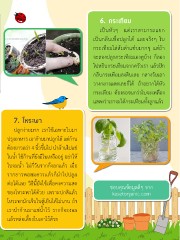 6. กระเทียม เป็นหัวๆ แต่เราสามารถแยก เป็นกลีบเพื่อปลูกได้ และจริงๆ ใบ กระเทียมใส่ส้มต�าแซ่บมากๆ แต่ถ้า จะลองปลูกกระเทียมเองดูบ้าง ก็ลอง ไปหยิบกระเทียมจากครัวเรา แล้วปัก กลีบกระเทียมลงดินเลย กลางวันเอา วางกลางแดดเลยก็ได้ ถ้าอยากได้หัว กระเทียม ต้องรอจนกว่าใบจะเหลือง แสดงว่าเราจะได้กระเทียมทั้งลูกแล้ว 7. โหระพา ปลูกง่ายมาก เราใช้เฉพาะใบมา ปรุงอาหาร เอาก้านมาปลูกได้ แต่ก้าน ต้องยาวกว่า 4 นิ้วขึ้นไป น�าก้านไปแช่ ในน�้า ใช้ก้านที่ยังมีใบเหลืออยู่ อย่าให้ ใบจมน�้า ไม่กี่วันรากก็งอกแล้ว เมื่อ รากยาวพอสมควรแล้วก็น�าไปปลูก ต่อได้เลย วิธีนี้ยังใช้เพื่อคงความสด ขอบคุณข้อมูลดีๆ จาก ของโหระพาได้ด้วย เพราะปกติแล้ว kasetorganic.com โหระพามักเก็บในตู้เย็นได้ไม่นาน ถ้า เราน�าก้านมาแช่น�้าไว้ รากก็จะงอก แล้วหล่อเลี้ยงใบเอาไว้ด้วย