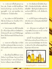 3. กำรท�ำอำหำรที่ไม่ต้องผ่ำนควำม 8. ถ้ำจ�ำเป็นต้องน�ำน�้ำมันพืชกลับมำ ร้อน เช่น น�้ำสลัด ควรใช้น�้ำมันที่มีกรด ใช้ซ�้ำ น�้ำมันต้องไม่มีกลิ่นหืน เหนียวข้น ไขมันไม่อิ่มตัวสูง และไม่แข็งตัวใน หรือมีสีด�ำ ที่ส�ำคัญต้องไม่มีเศษอำหำร อุณหภูมิต�่ำ 5-10 องศำเซลเซียส เช่น และไม่ควรใช้ซ�้ำเกิน 2 ครั้ง เพื่อป้องกัน น�้ำมันมะกอก น�้ำมันถั่วเหลือง สำรก่อมะเร็ง 4. ในกำรผัดอำหำรใช้น�้ำมันชนิดใด 9. ควรใช้น�้ำมันหลำกชนิดหมุนเวียน ก็ได้ เช่น น�้ำมันมะกอก ถั่วเหลือง ร�ำข้ำว สลับกันไป เพรำะน�้ำมันแต่ละชนิดมีข้อดี แต่ควรใส่ปริมำณน้อยที่สุด ข้อเสียต่ำงกัน 5. ไม่ควรทอดอำหำรที่ยังไม่สะเด็ด 10. เมื่อทอดอำหำรเสร็จแล้ว ใช้ น�้ำ หรือเร่งไฟแรงให้เปลวไฟสัมผัสกับ กระดำษซับน�้ำมันรองอำหำรไว้ จะช่วย น�้ำมันบ่อยครั้ง เพรำะจะท�ำให้เกิดอนุมูล ลดน�้ำมันจำกอำหำรได้บ้ำง อิสระ ซึ่งเป็นสำเหตุท�ำให้เกิดมะเร็งและ โรคหัวใจ ต่อไปนี้ ก็น่ำจะมั่นใจแล้วว่ำจะเลือก ใช้น�้ำมันแบบไหนถึงจะท�ำให้อำหำร 6. ทอดอำหำรครั้งละไม่มำกเกินไป อร่อย และปลอดภัยต่อสุขภำพ ห่ำงไกล ช่วยให้ควำมร้อนของน�้ำมันกระจำยอย่ำง จำกตัวกำรร้ำย ที่อำจเป็นสำเหตุหนึ่งของ ทั่วถึง และใช้เวลำในกำรทอดอำหำรน้อย ปัญหำสุขภำพในอนำคต ลง 7. เมื่อเปลี่ยนน�้ำมันที่ใช้ทอด ควรเท น�้ำมันเก่ำออกให้หมด ไม่ควรเทน�้ำมัน ใหม่ปนกับน�้ำมันเก่ำ เพรำะน�้ำมันเก่ำจะ ไปเร่งกำรเสื่อมสภำพของน�้ำมันใหม่ ขอบคุณข้อมูลดีจำก : ModernMom